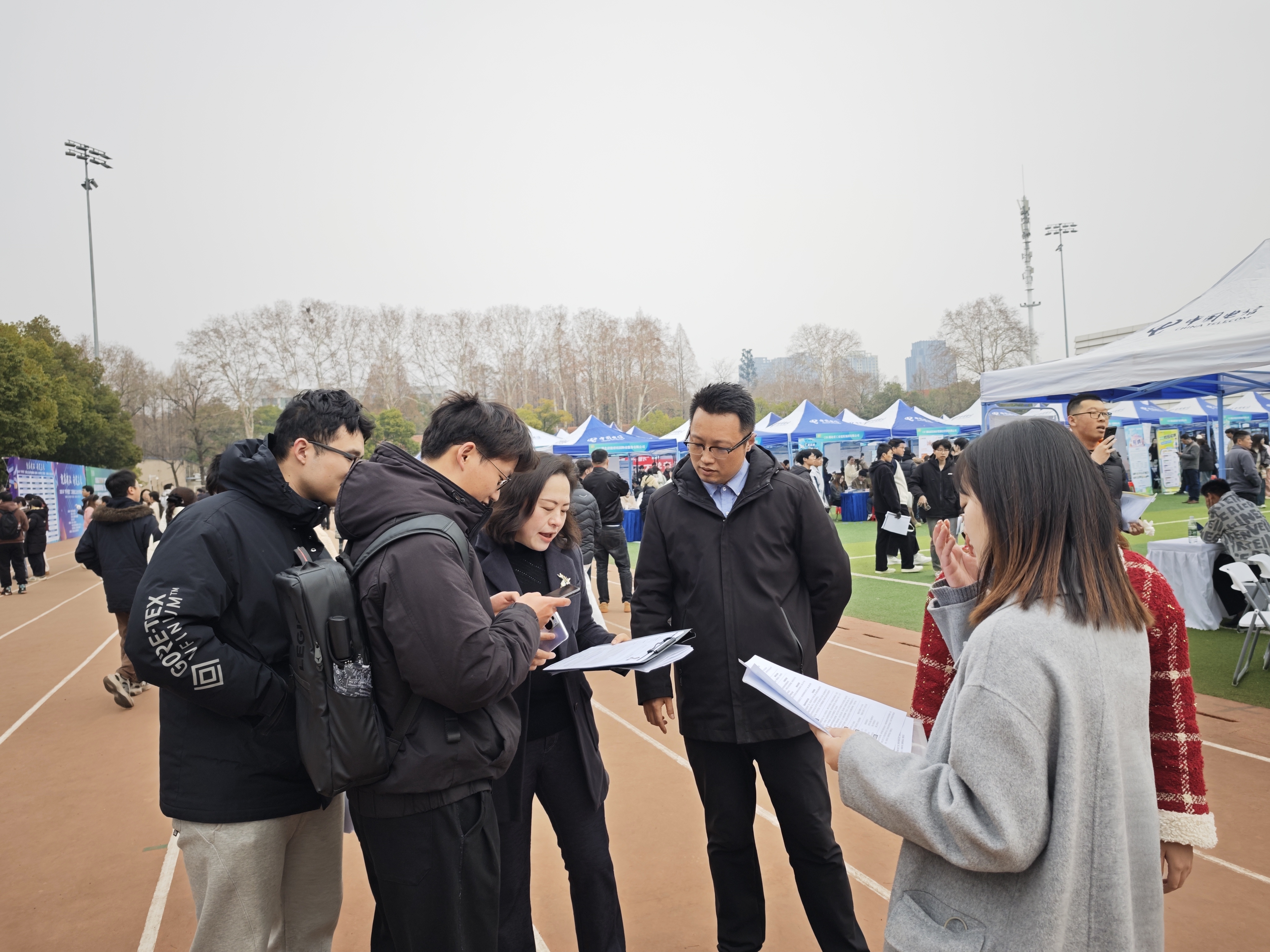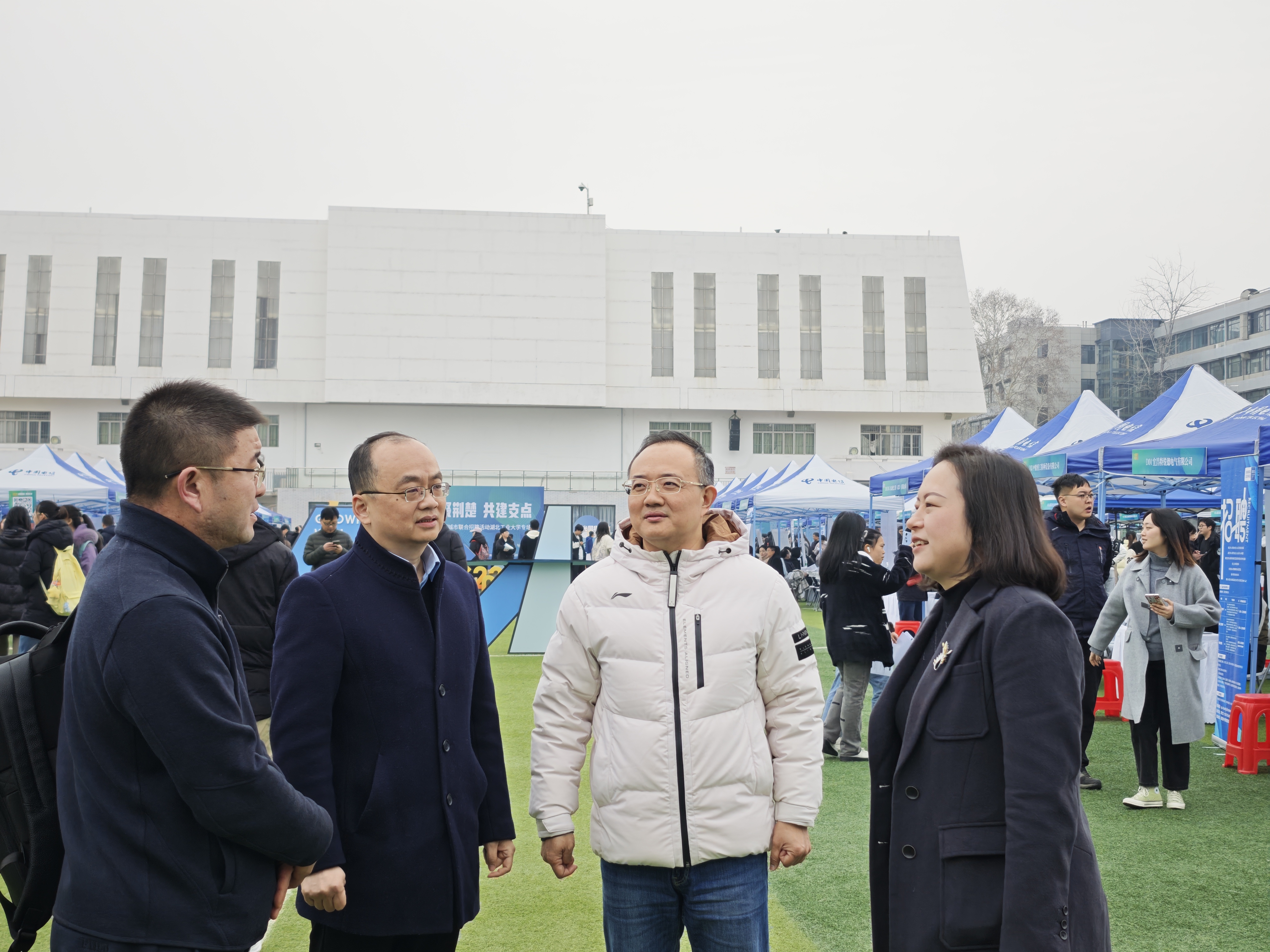 3月7日,湖北工业大学在中区操场举办“才聚荆楚·共建支点”2025届春季大型招聘会,本次招聘会吸引了来自全国各地的700余家优质企业参与,为毕业生提供了万余个就业岗位。活动当天,学院领导班子成员、各系主任、毕业班班导师等深入招聘会现场,逐一走访校友企业展位,并与重点合作单位进行座谈。