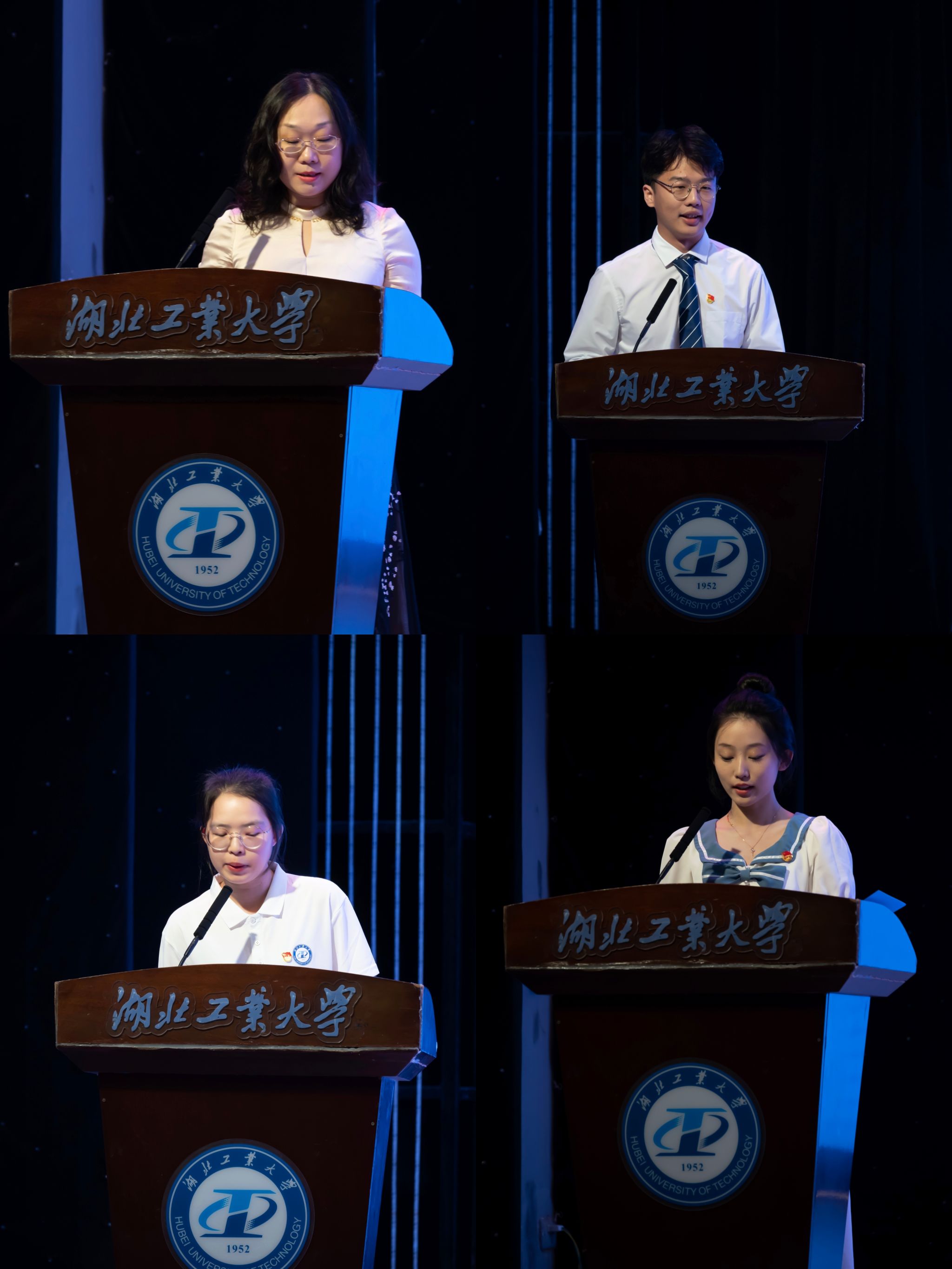 开学典礼在全场庄严的国歌声中拉开帷幕。本科生代表石一枫结合在校学科竞赛、志愿服务、文体活动等经历,向新生们讲述如何利用好时间过有意义的大学生活。本科生新生代表汪巾琦以“奋斗正青春,逐梦启新程”为题,表达了对大学生活的憧憬及争做有理想、敢担当、能吃苦、肯奋斗新时代好青年的愿景。研究生新生代表李桂文通过修身立德、锚定目标、创新实践三个目标,希望同学们在潜心求学中开拓视野。教师代表游怡以“锻造认知力、培养思考力、提升行动力”为关键词,寄语同学们知行合一、德业兼修、在湖工大度过璀璨青春。