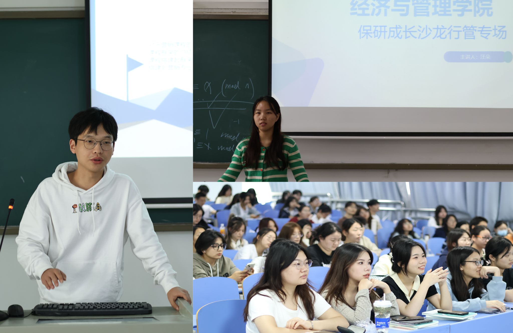 为引导学生进一步明确奋斗目标,合理规划职业生涯,10月19日,经济与管理学院在教3举办了“经诚”成长沙龙活动。本期活动以“保研分享”“公考培训”“留学交流”“创新创业”为主题,分场次面向全院学生开展分享交流活动。