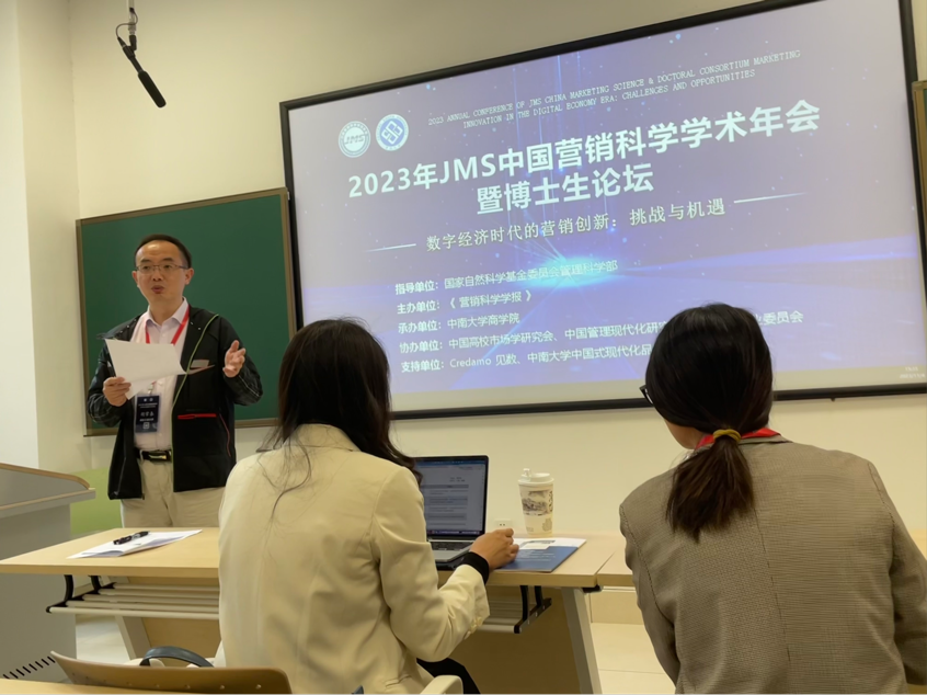 11月2日-5日,由国家自然科学基金委员会管理科学部、《营销科学学报》、中南大学商学院、中国高校市场学研究会、中国管理现代化研究会市场营销专业委员会、Credamo见数和中南大学中国式现代化品牌发展研究院联合举办的“2023年JMS中国营销科学学术年会暨博士生论坛”(以下简称JMS年会)在湖南长沙顺利召开。学院教师胡常春、22级企管硕士汪敏慧、20级营销本科生张欣怡、21级企管硕士郭梦雨和22级企管硕士巴谡等合作撰写的学术论文《品牌标识动态感与品牌个性的匹配性对消费者品牌态度的影响》通过专家匿名评审,汪敏慧在大会平行分论坛一(品牌管理)宣读。胡常春受邀担任大会平行分论坛二(消费者行为)主持人,并点评该分论坛的论文。