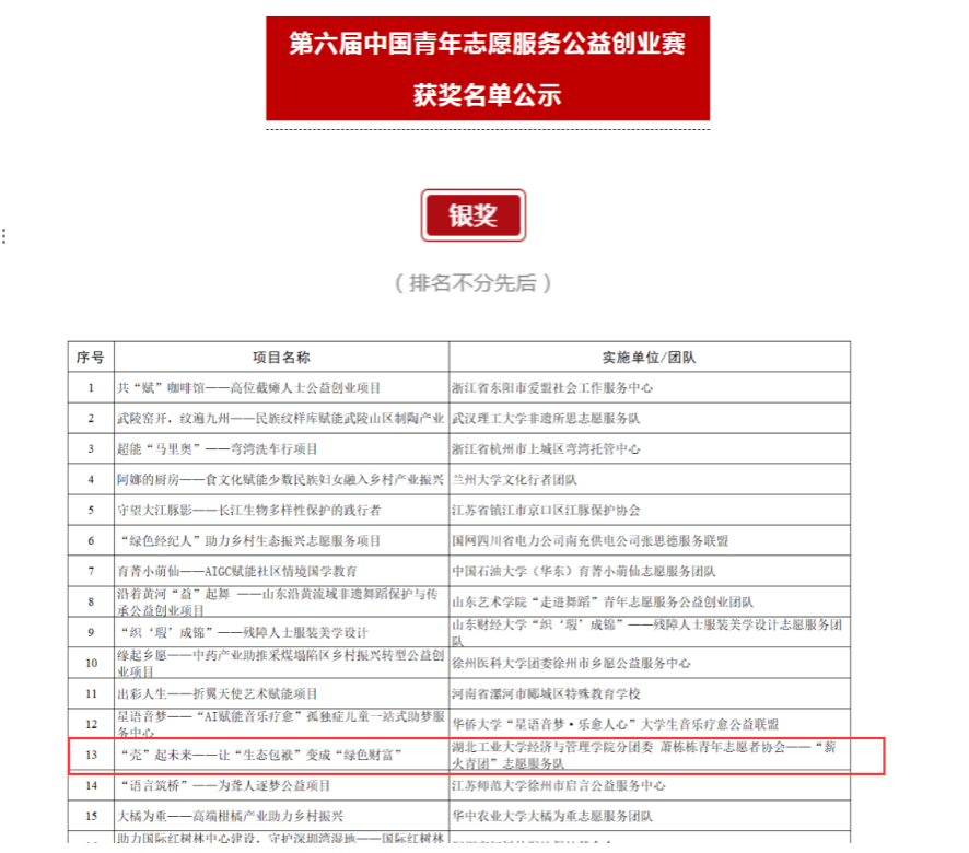 我院《壳起未来——让生态包袱变成绿色财富》项目通过文本评审,线上答辩展示,获得银奖,这也是我院第一次在此类赛事中获得国家级银奖。该项目团队通过技术研发将虾壳固废资源循环再利用,并将研发成果用于服务政府、企业和农户,获得一致好评。
