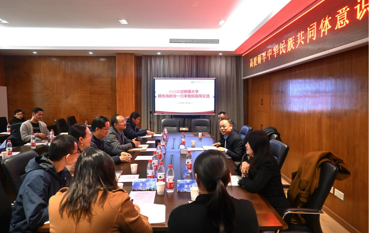 11月30日,新疆大学党委常委、副校长顾光海教授一行应邀来我院指导交流工作,学校统战部、学工部及相关学院负责同志参加座谈会,会议由院长孙浩主持。