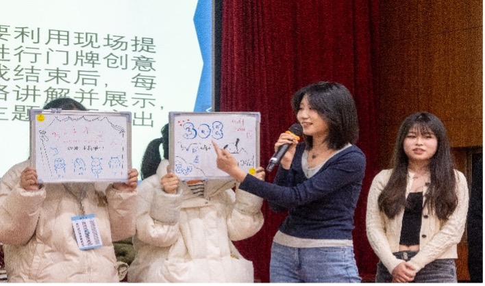 在寝室门牌设计环节,选手们亮眼的绘画技巧、个性鲜明的寝室主题讲解给评委和观众们留下了深刻印象。最终,草莓园4栋308寝室凭借精心的设计和精彩的解说获得了本次决赛的第一名。