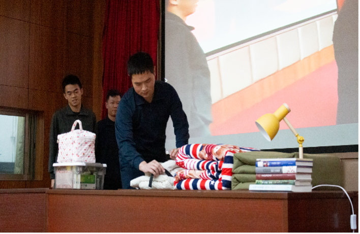 11月30日下午,学院寝室文化节决赛暨宿舍内务整理大赛在博学堂举行,并现场邀请退伍大学生嘉宾为同学们进行内务整理标准讲解和展示。
