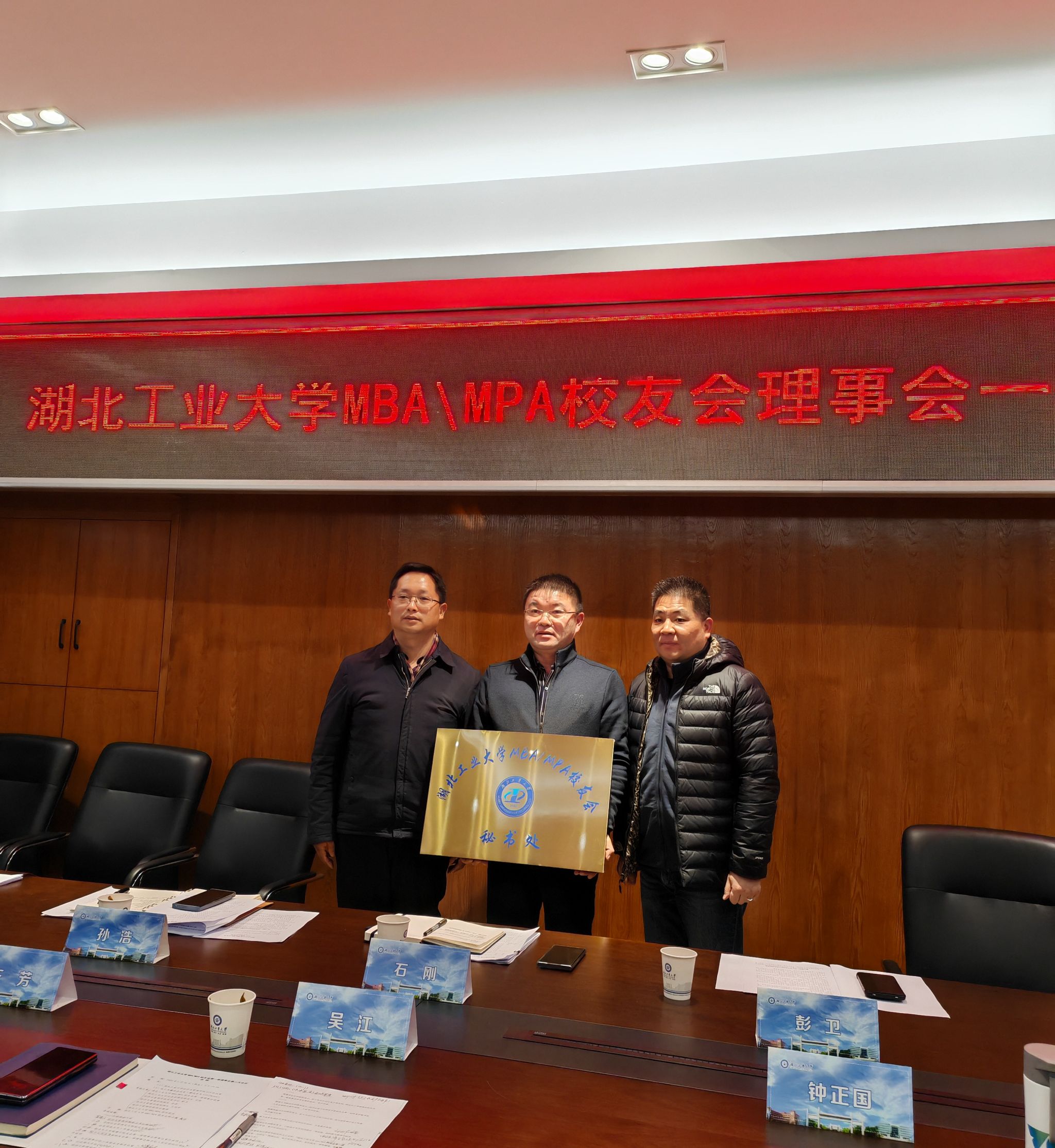 湖北工业大学社会资源处石刚副处长和经济与管理学院党委书记彭卫共同为湖北工业大学MBA/MPA校友会秘书处进行了授牌仪式。