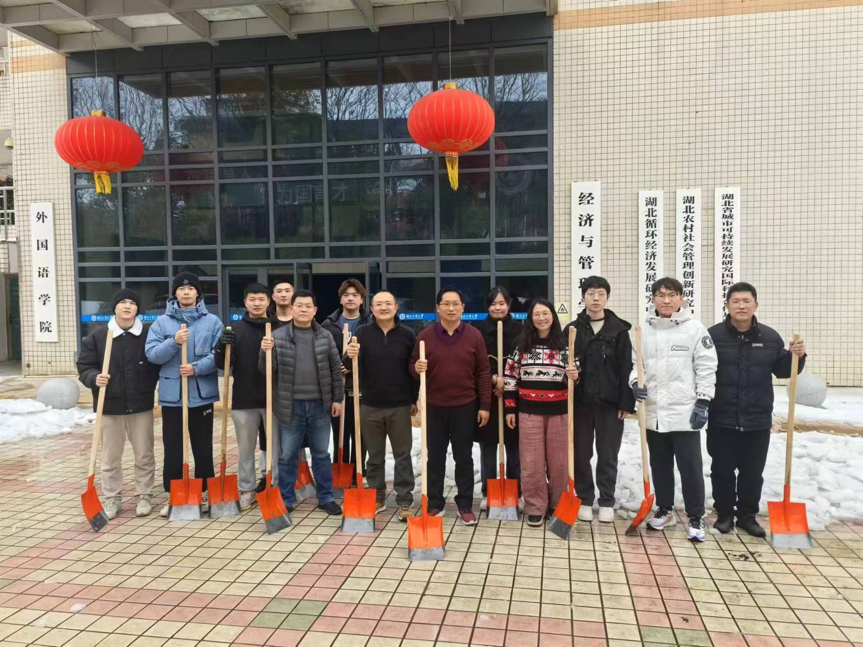 近日,受雨雪冰冻天气影响,校园道路被冰雪覆盖严重影响学生开学安全,学院党委高度重视开学各项准备工作。为了进一步响应学校党委的扫雪除除冰保教护学的号召,学院党委于2月25日组织师生党员代表积极开展扫雪除冰活动,学院党委书记彭卫、院长孙浩带领学院师生志愿者陈志刚、夏露、孙雨生及研究生党员冯竣凯等近20人参加了除雪行动,大家齐心协力,历经2个小时在文科楼前为师生开辟了一条“爱心路”。