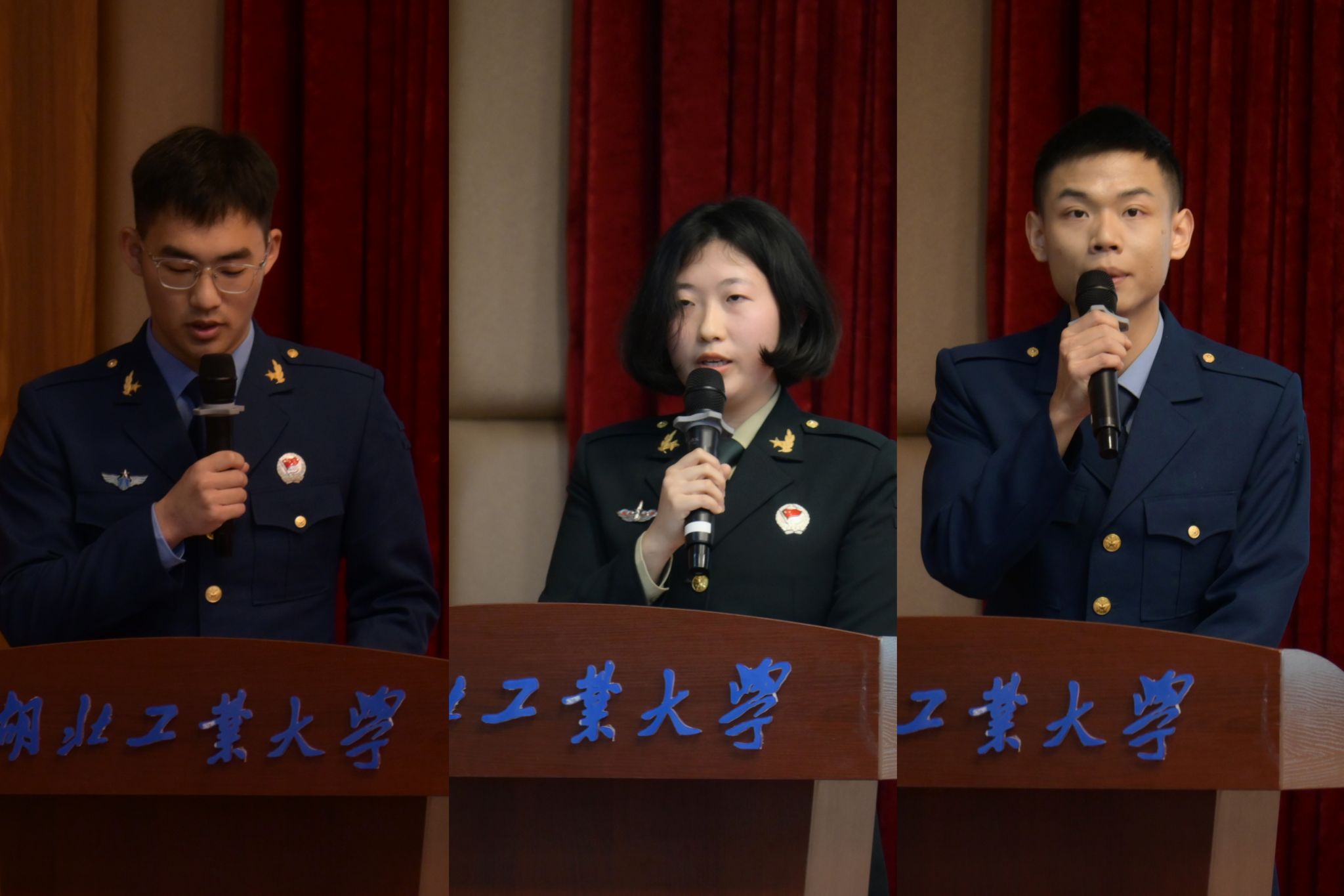 会上,师生共同观看了由学校退伍大学生合作拍摄的征兵宣传片《永不褪色的迷彩》。退伍大学生康梓彬、胡子涵、黎鹏志分享了他们的热血军旅故事,号召更多同学应征入伍、报效祖国。