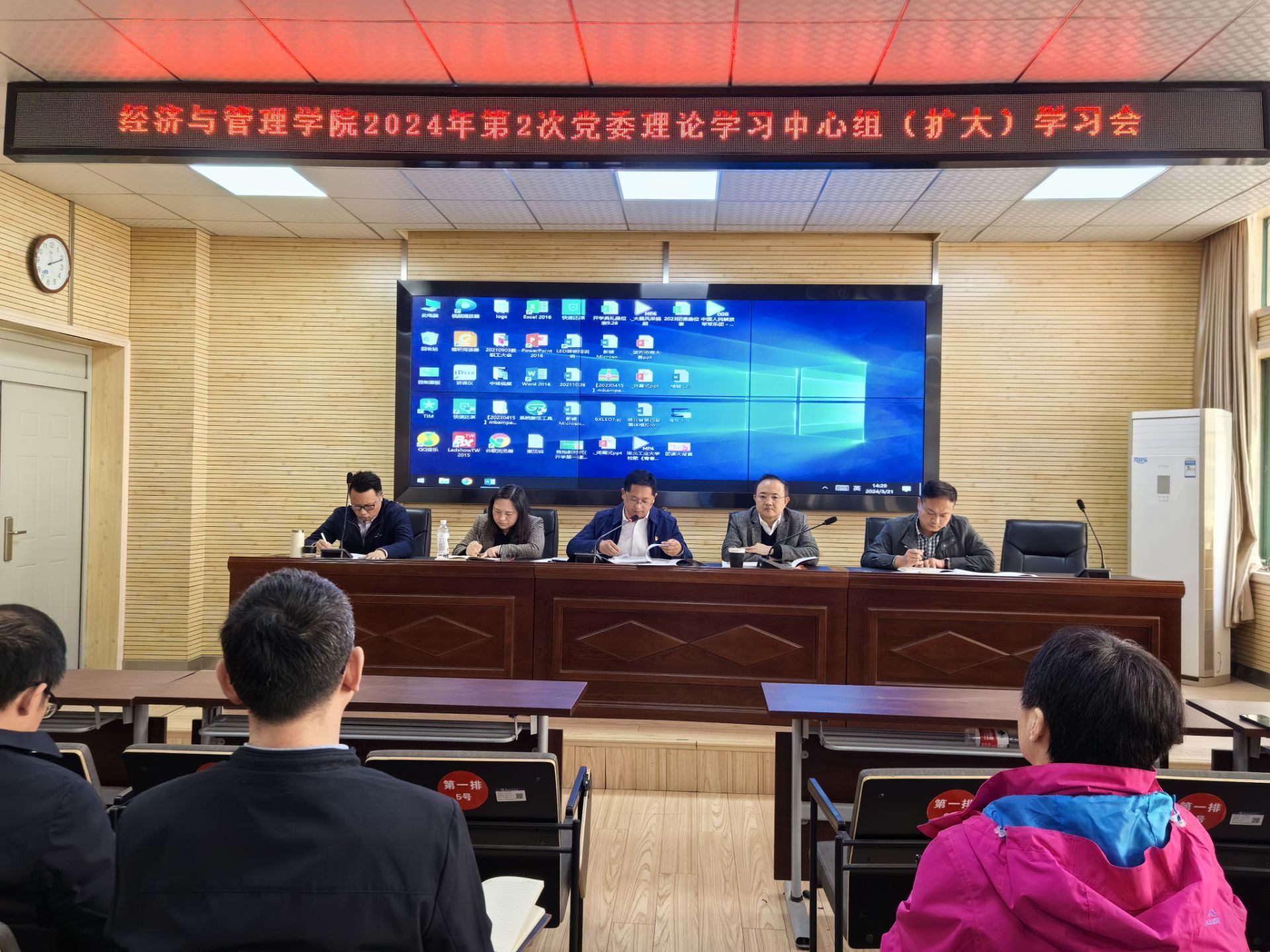 3月21日下午,经济与管理学院党委在文科楼二楼会议室召开2024年第2次党委理论学习中心组(扩大)学习会。学院全体领导班子成员、全院教职工参加了本次集中学习。会议由院党委书记彭卫主持。