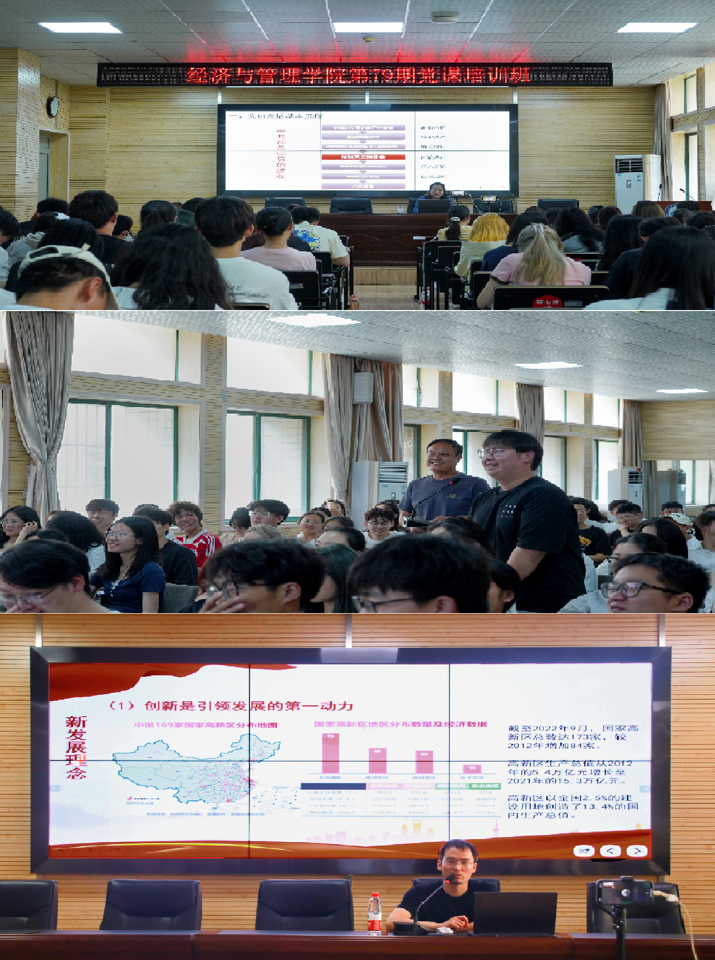 学院党委副书记余贞向同学们分享了党员发展工作流程与党员教育管理中的常见问题,引导同学们准确把握根本政策、学校制度和工作实际之间的关系,高质量做好党员发展工作。副院长张冀新重点讲述了新质生产力与传统生产力的区别及其对构建新发展格局的作用,引导同学们对以中国式现代化全面推进强国建设、民族复兴伟业有重要意义。副院长王利军深入论述了“把握新发展阶段,贯彻新发展理念,构建新发展格局”三者的重大关系,帮助同学们认清新发展格局,回望过去,展望未来。