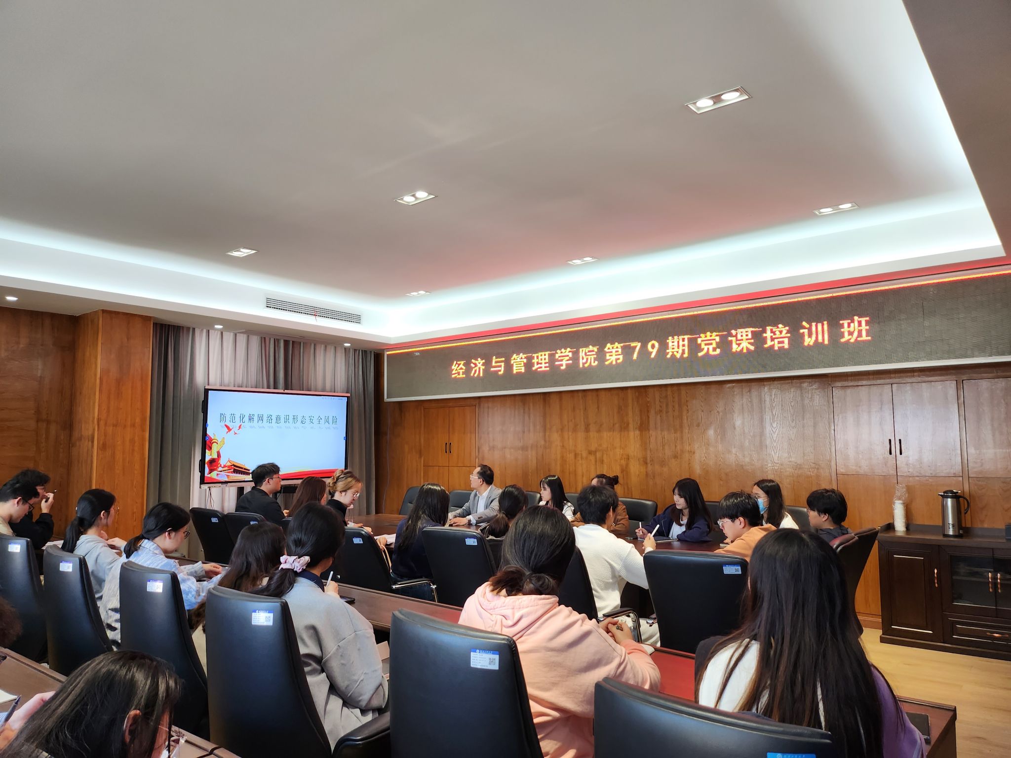 4月27日,经济与管理学院第79期党课培训班在文科楼顺利开班。本次党课采取“线上+线下”的模式,由学院领导班子成员授课。学院本科生、研究生共计600余名同学参加了党课培训。