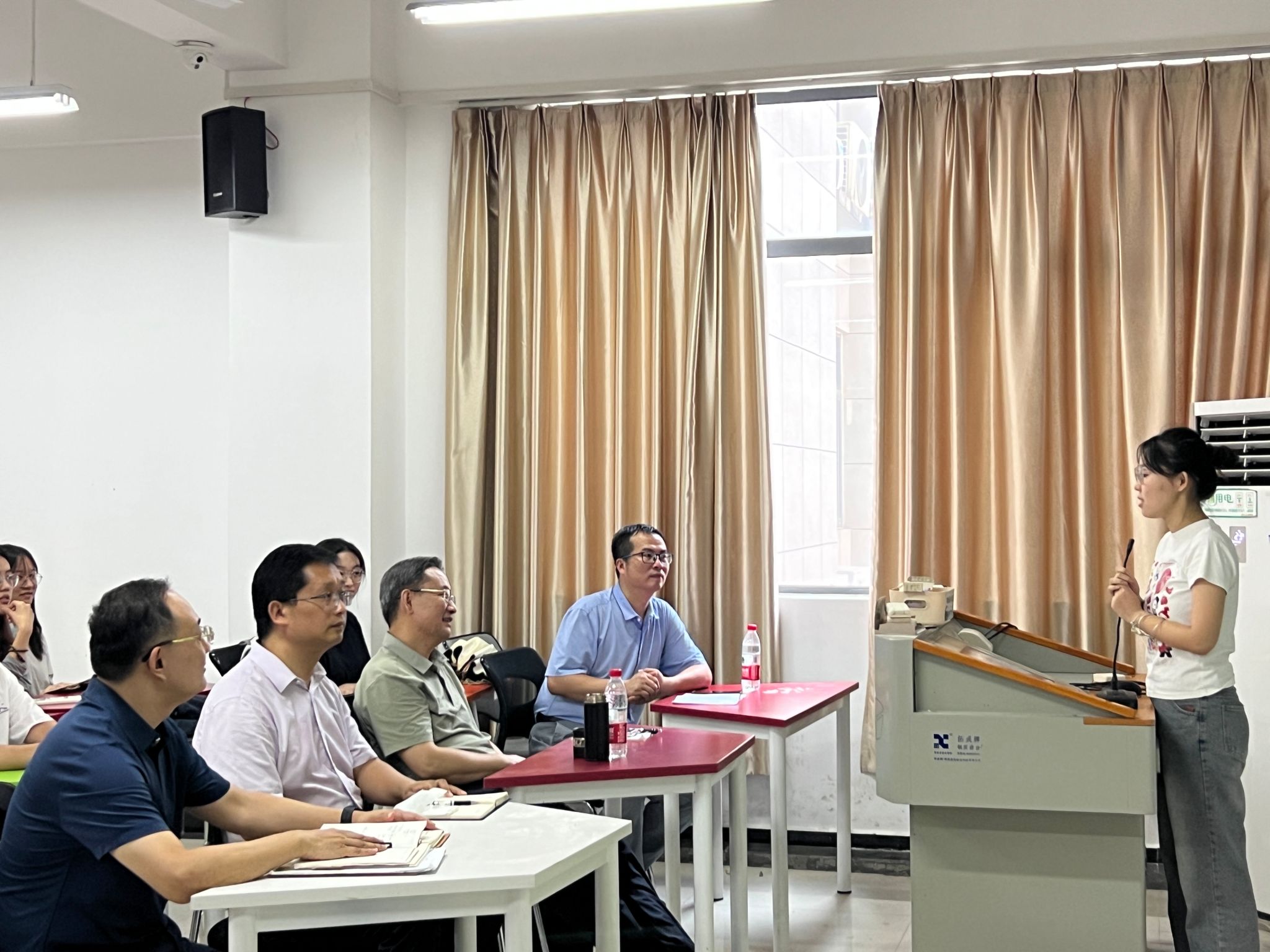 8月31日,校党委书记彭育园莅临经管学院调研指导本科生短学期实践工作,随机聆听学生们的短学期答辩情况并现场进行交流指导。校教务处处长张道德、经管学院党委书记彭卫、院长孙浩和学院党委副书记余贞陪同调研。