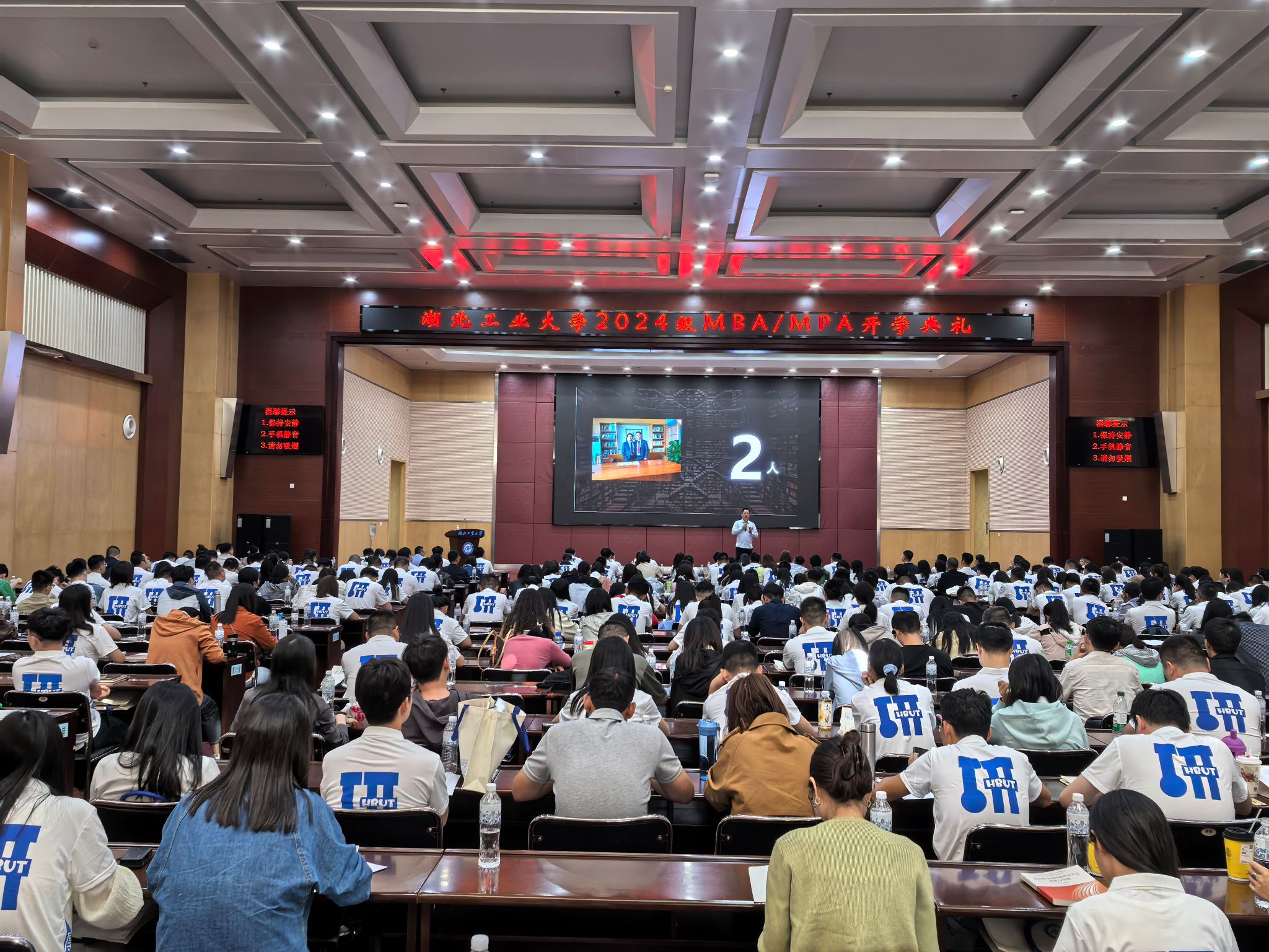 10月2日下午,湖北工业大学经济与管理学院2024级MBA和MPA开学典礼在学校图书馆报告厅隆重举行,校党委常委、副校长宋小春,研究生院副院长钱应平,新瞭望企业管理咨询创始人、学易优教育集团董事长向兰勇和经济与管理学院全体领导班子成员出席大会。学院教师代表、相关学科负责人以及四百余名新生参加了本次开学典礼。