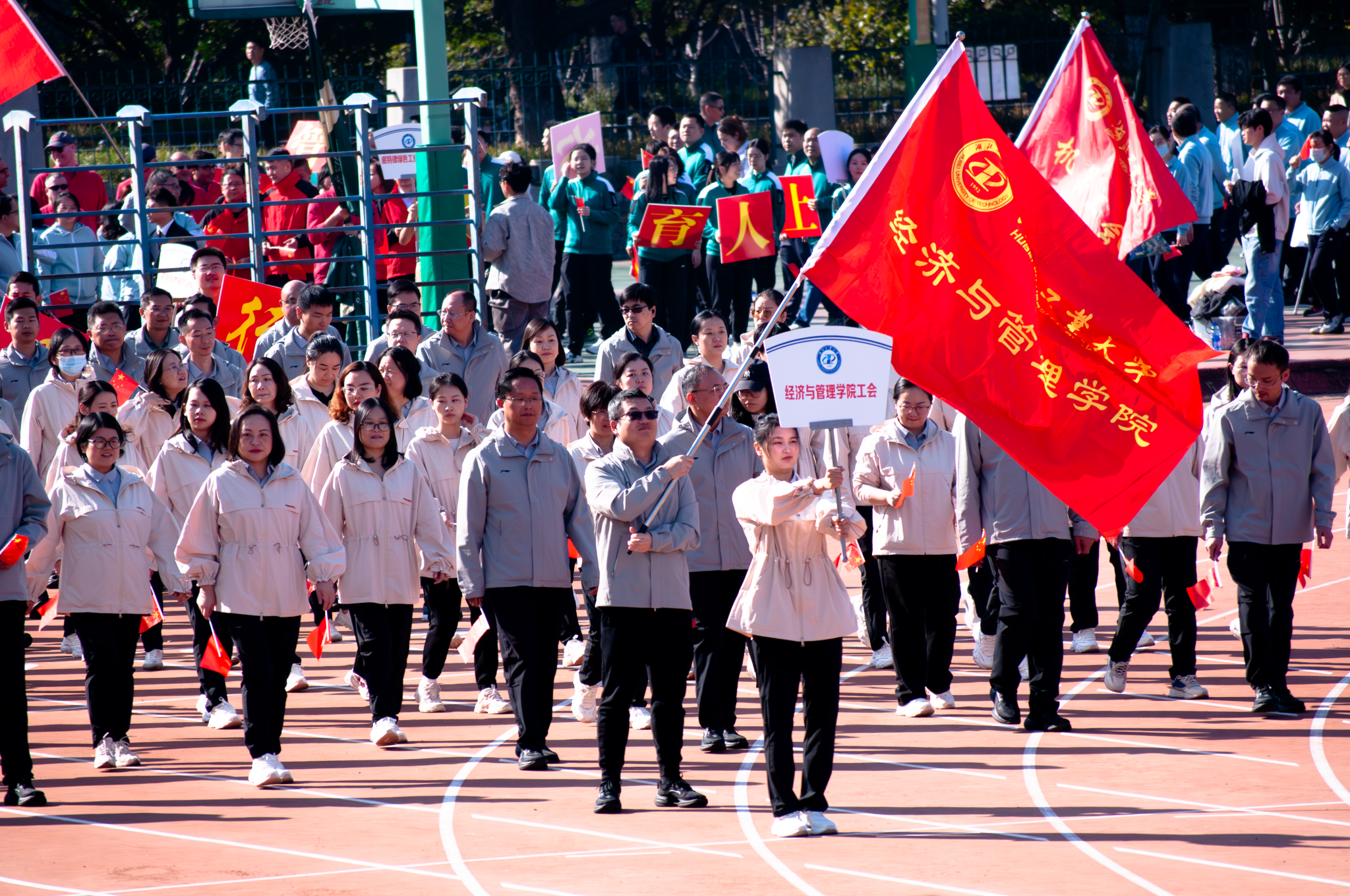 金秋送爽、丹桂飘香。2024年10月25日至26日,湖北工业大学“梧桐杯”第41届田径运动会在中区操场举行。经济与管理学院师生代表队在赛场上尽显拼搏精神,取得了教职工组团体总分第八名、男子甲组团体总分第六名、学生组精神文明奖和学生组广播体操三等奖等优异成绩。