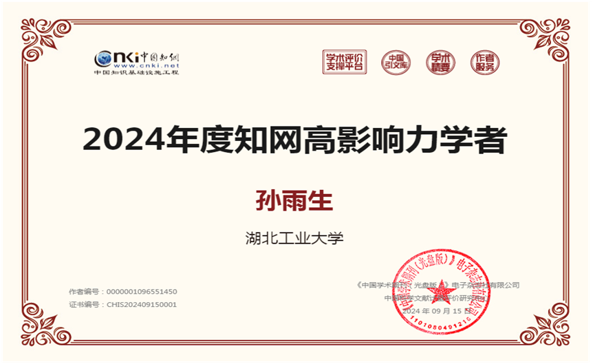 近日,中国知网揭晓了2024年度知网影响力学者名单,经济与管理学院孙雨生、涂科等两位教师成功入选。