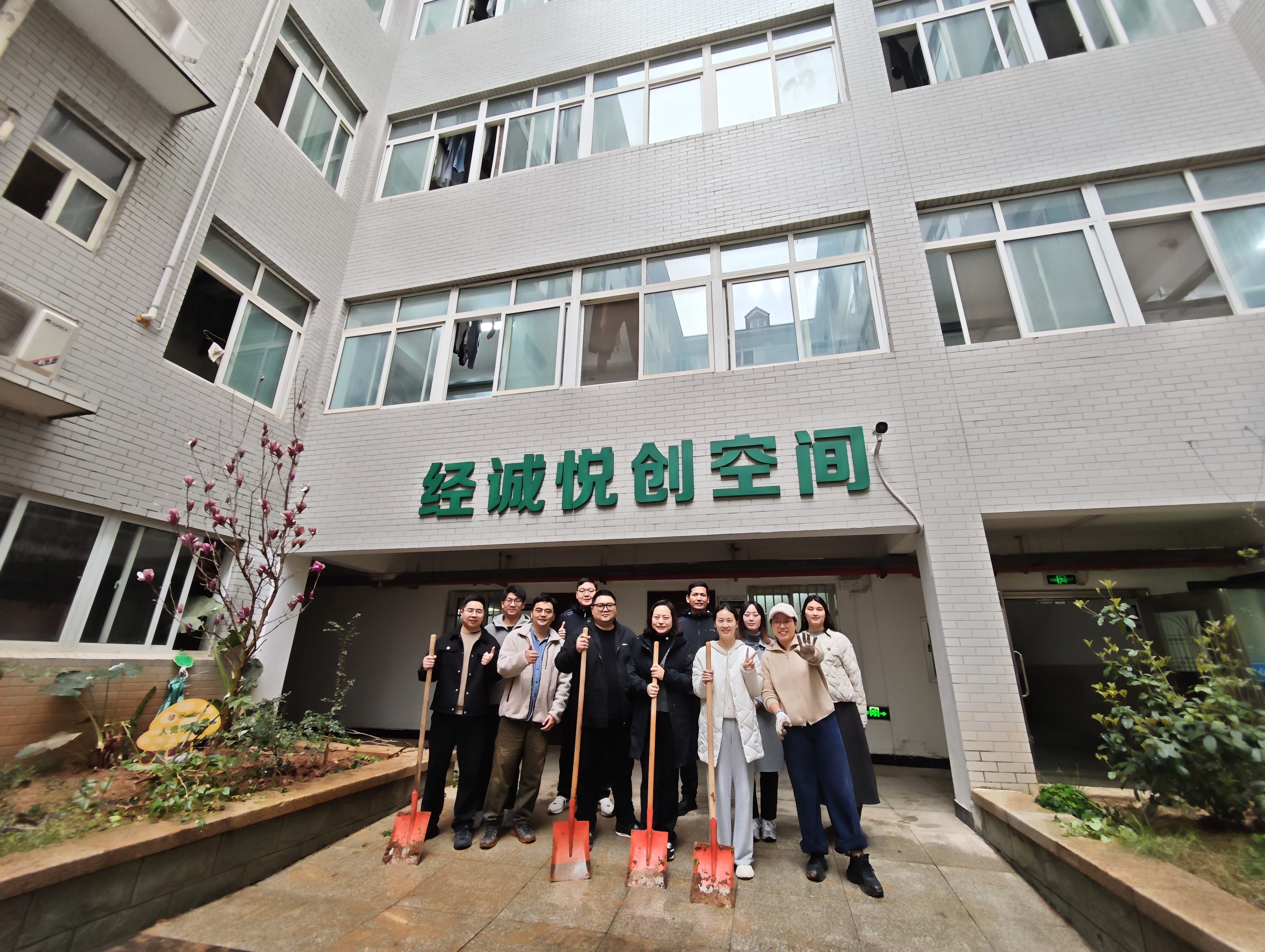 在第47个植树节来临之际,为营造爱绿、植绿、护绿的美好校园环境。3月12日下午,经济与管理学院在学生社区驿站“经诚悦创空间”开展“植此青绿,共创未来”系列劳动实践活动,校学工部副部长何流、学院党委副书记余贞、学工办全体辅导员与师生代表一道,挥锹铲土、扶苗培土、提水浇灌,将一棵棵新苗扎根土壤,共植“生态绿”。