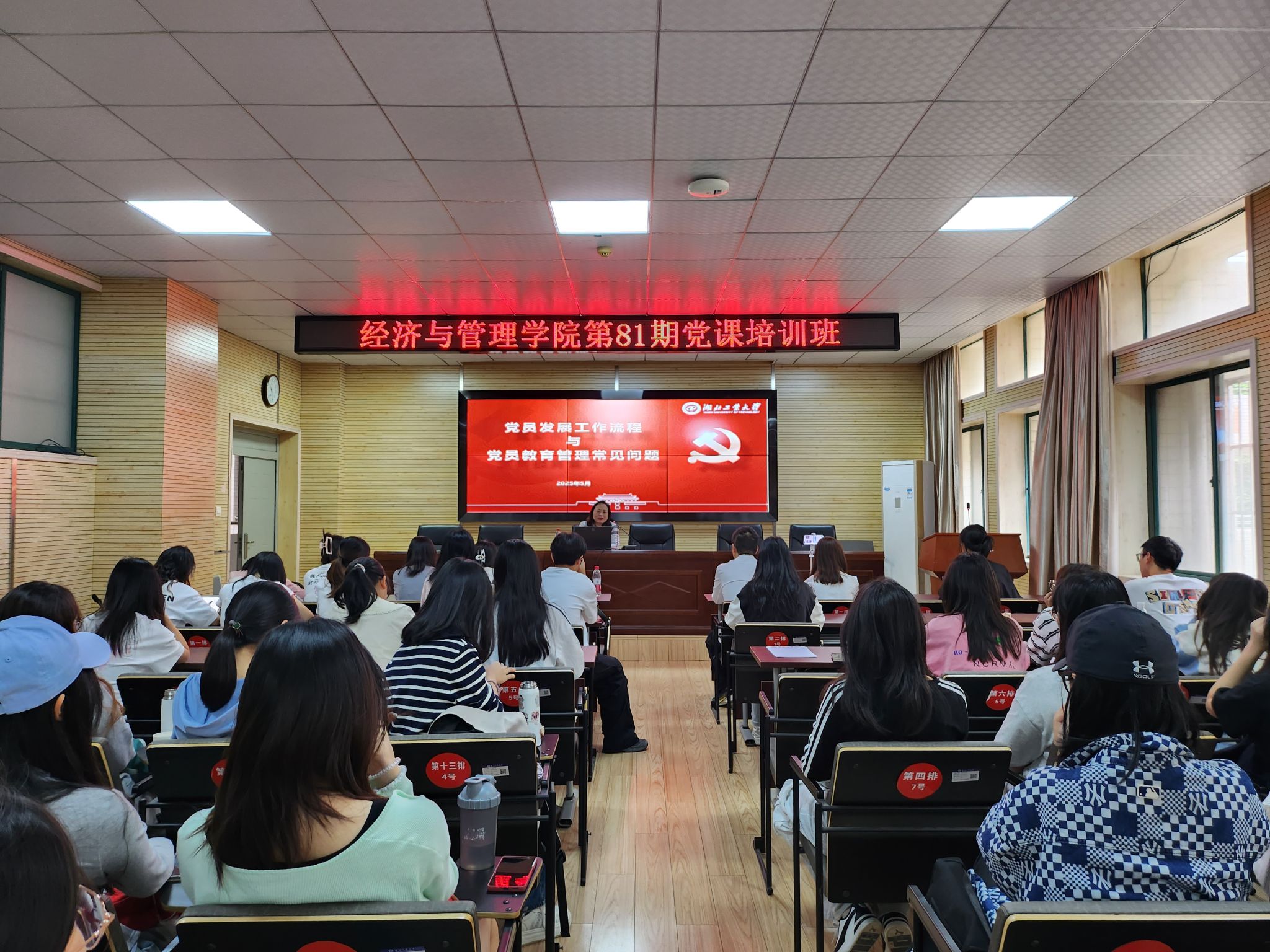 5月10日,经济与管理学院在文科楼二楼会议室举办第81期党课培训班,学院本科生及研究生共计500余人参与培训。本期党课邀请学院党委副书记余贞、副院长王利军、人力资源系主任杨小婉、萧栋栋党支部书记张皓四位主讲人进行专题授课,为青年学子搭建起理论学习与实践认知的双重平台。