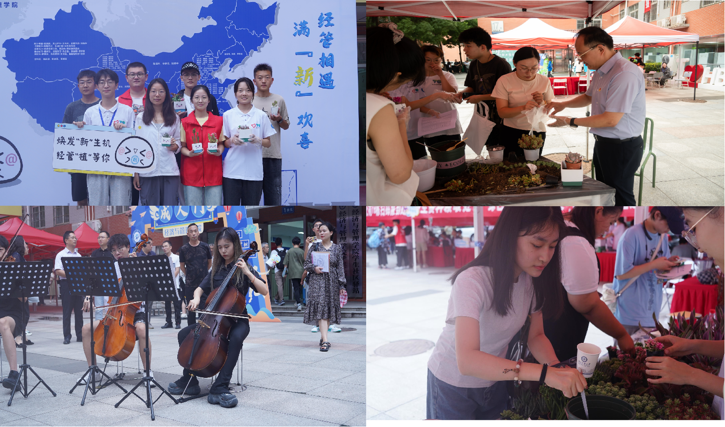 本次迎新体现经管特色,迎新主背景中的“中国地图”标注了从全国各省前来的新生姓名,“种下成才树、跨越成人门”,与老师、父母一起种下的多肉植物等表达了对新生的美好祝福。“玩转经管”的惊喜指南,文工团带来的活力秀以及管弦乐表演,“时光胶囊”投递卡帮助同学们及早规划大学生活,吸引学生及家长们驻足观看……
