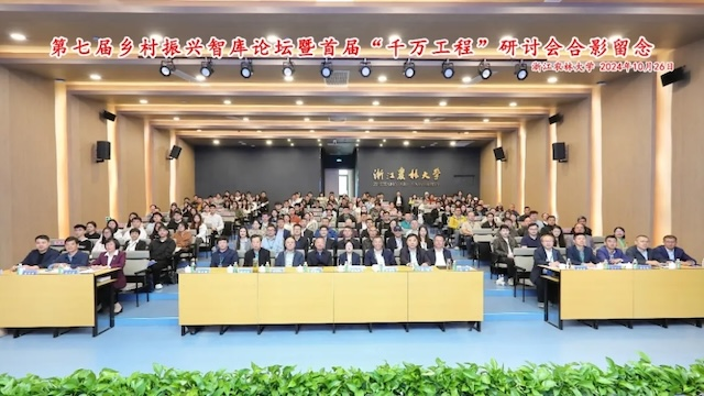 10月26日,第七届乡村振兴智库论坛暨首届“千万工程”研讨会在浙江农林大学举办,活动由浙江省社会科学界联合会指导,浙江农林大学浙江省乡村振兴研究院、浙江农林大学经济管理学院、浙江省农业农村现代化研究院、浙江农林大学“千万工程”研究院、浙江农林大学生态文明研究院共同主办。浙江省社会科学界联合会党组成员、副主席李文贵,浙江农林大学副校长吴家胜参加会议并致辞。来自中国社科院、浙江大学、中国人民大学、上海交通大学、中国农业大学、南京农业大学等53家政府机构、高等院校、科研院所及企事业单位的专家学者300余人参加了会议。