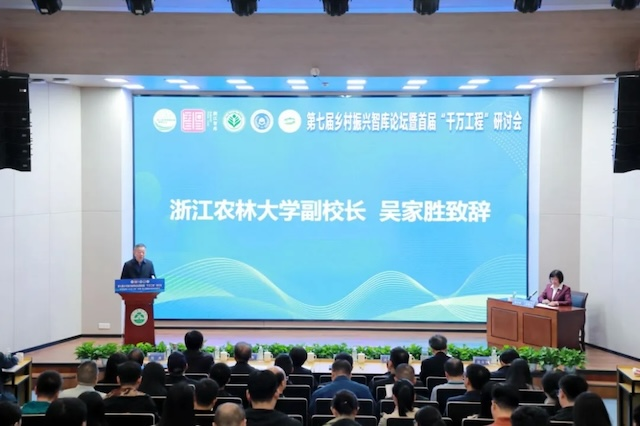 吴家胜指出,作为浙江省唯一的农林类重点建设高校、浙江省高校助力乡村振兴联盟秘书长单位,浙江农林大学一直是乡村振兴战略的积极推动者、推进“千万工程”实施的生力军。我们深入领会并全面吸收“千万工程”所蕴含的深邃发展理念、科学的工作方法,以及宝贵的实践经验,抢抓“千万工程”持续迈向纵深的新发展机遇,成立全国高校首个“千万工程”研究院,在服务乡村振兴,实现农业强、农村美、农民富的新征程上全情投入、全心参与,为推进乡村振兴战略实施注入强大动力。他表示,浙江农林大学智库将进一步聚焦国家和省域层面乡村振兴、共同富裕等重大战略,充分发挥浙江农林大学学科专业和智库平台优势,持续加大咨政研究和成果转化力度,不断深化与政府、企业和社会各界的合作,为发展新质生产力注入强劲的社科动能。