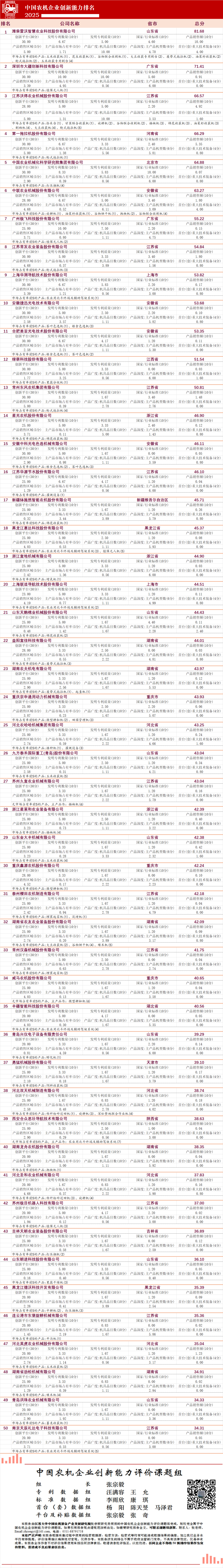 中国农机企业创新能力评价课题组从2024年开始启动了对中国农机企业创新能力50强评价,在2024年评价的基础上,2025年课题组继续开展农机企业创新能力评价。
