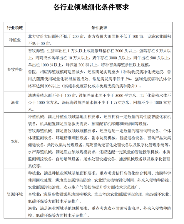近日,农业农村部发布《关于开展农业农村部现代农业科技试验示范基地遴选推荐工作的通知》,对各行业领域试验示范基地设立条件等做了说明,其中农业机械领域的申报条件如下:
