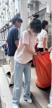 晨光初透时,鲜亮的“志愿红”已涌入宿舍楼道。男生们躬身托起塞满书籍的沉重箱柜,在狭窄楼梯间踏出稳健的节奏;女生们轻叩门扉提醒整理,用标签将杂乱的包裹归为流动的秩序。新志愿者肩头勒出深痕,仍沉默地抬起数十斤的行李袋。旧宿舍在门框与肩膀的碰撞声里逐渐清空,而这份无声的托举,早已为这场迁徙写下温暖的序言。