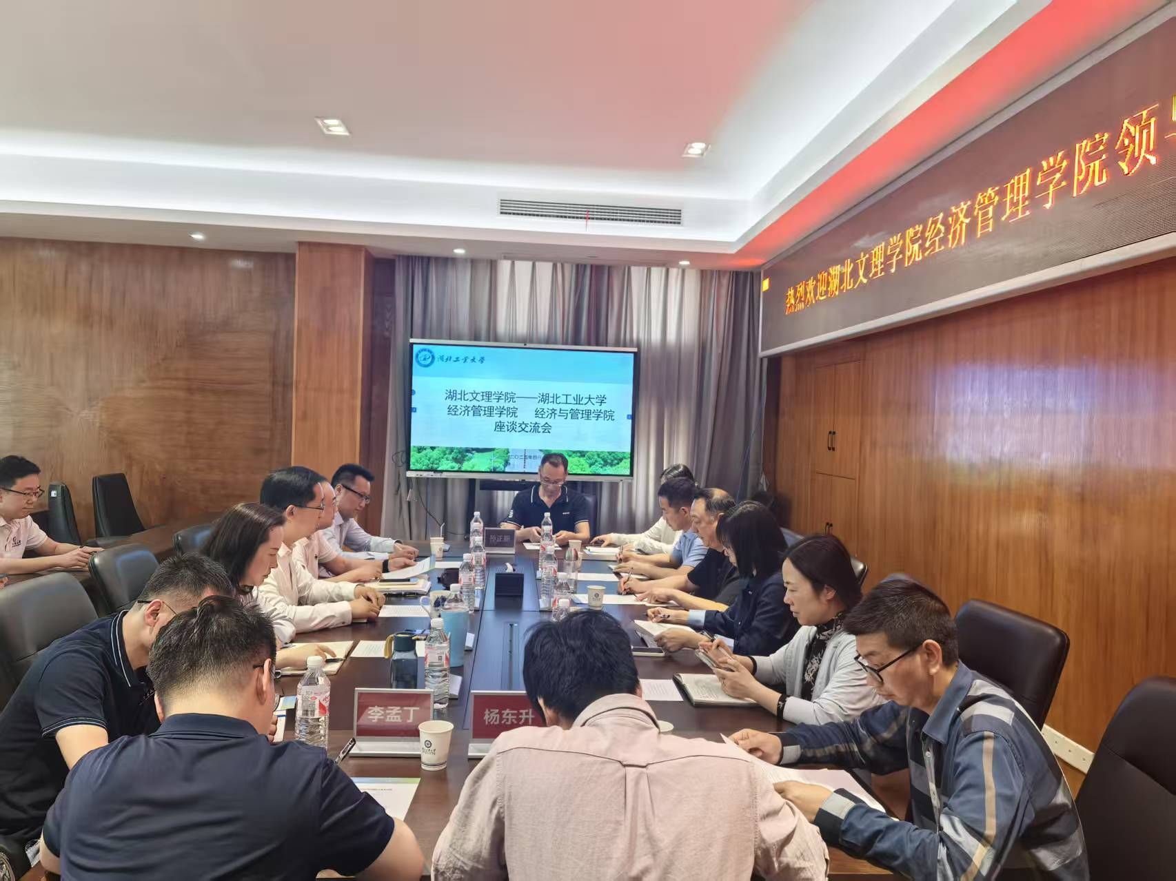 4月18日下午,湖北文理学院经济管理学院党委书记陈勇一行8人来我校经济与管理学院开展调研交流活动。本次活动以“互学互鉴、协同发展”为主题,围绕学科建设、党建创新、人才培养等议题展开深入研讨。湖北工业大学经济与管理学院党委书记彭卫主持会议,两学院领导班子成员、湖北工业大学经济与管理学院行政科室负责人共30余人参会。