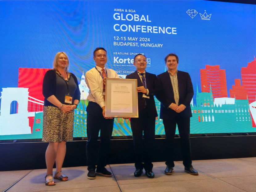 5月12日-15日,学院院长孙浩、副院长张冀新一行,应英国工商管理硕士协会和商学院毕业生协会(简称AMBA&BGA)的邀请,参加了在匈牙利布达佩斯举行的2024年AMBA&BGA全球大会。全球大会期间,AMBA&BGA组织对获得金牌认证的商学院举行现场授证仪式,AMBA&BGA首席执行官Andrew Main Wilson先生和AMBA&BGA主席Wendy Loretto教授为学院颁发BGA国际金牌认证。