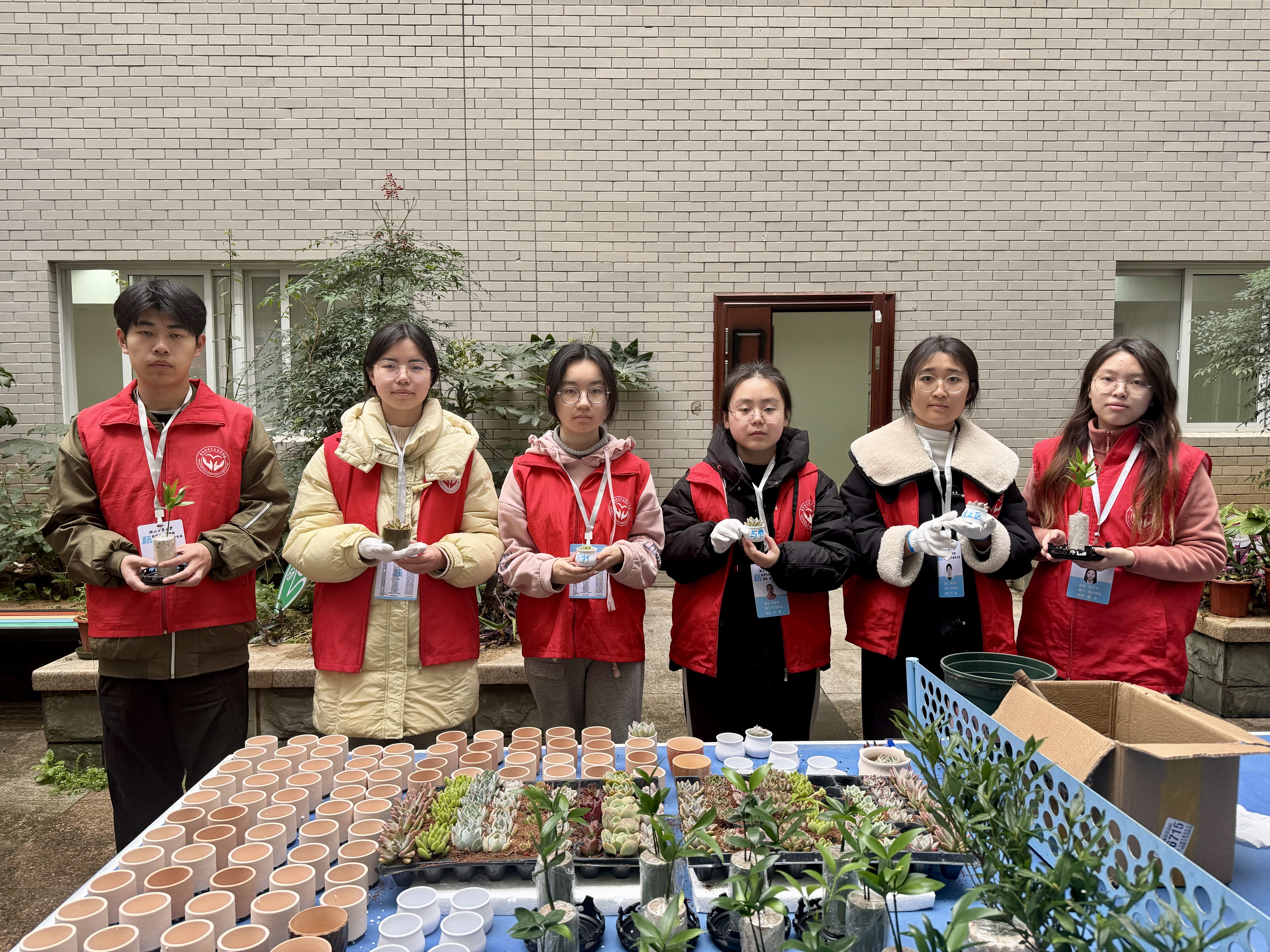 在“绿识”问答区,学生们踊跃答题、气氛热烈。问题涵盖树木种类识别、植树实用技巧、生态环境保护等多个维度,同学们在一问一答中强化生态文明认识。参与活动答题活动的同学每人还收获了一份多肉种植包,在场师生将对美好生活的期许融入自己的多肉作品,摆在办公室和宿舍中,请“春”入室。