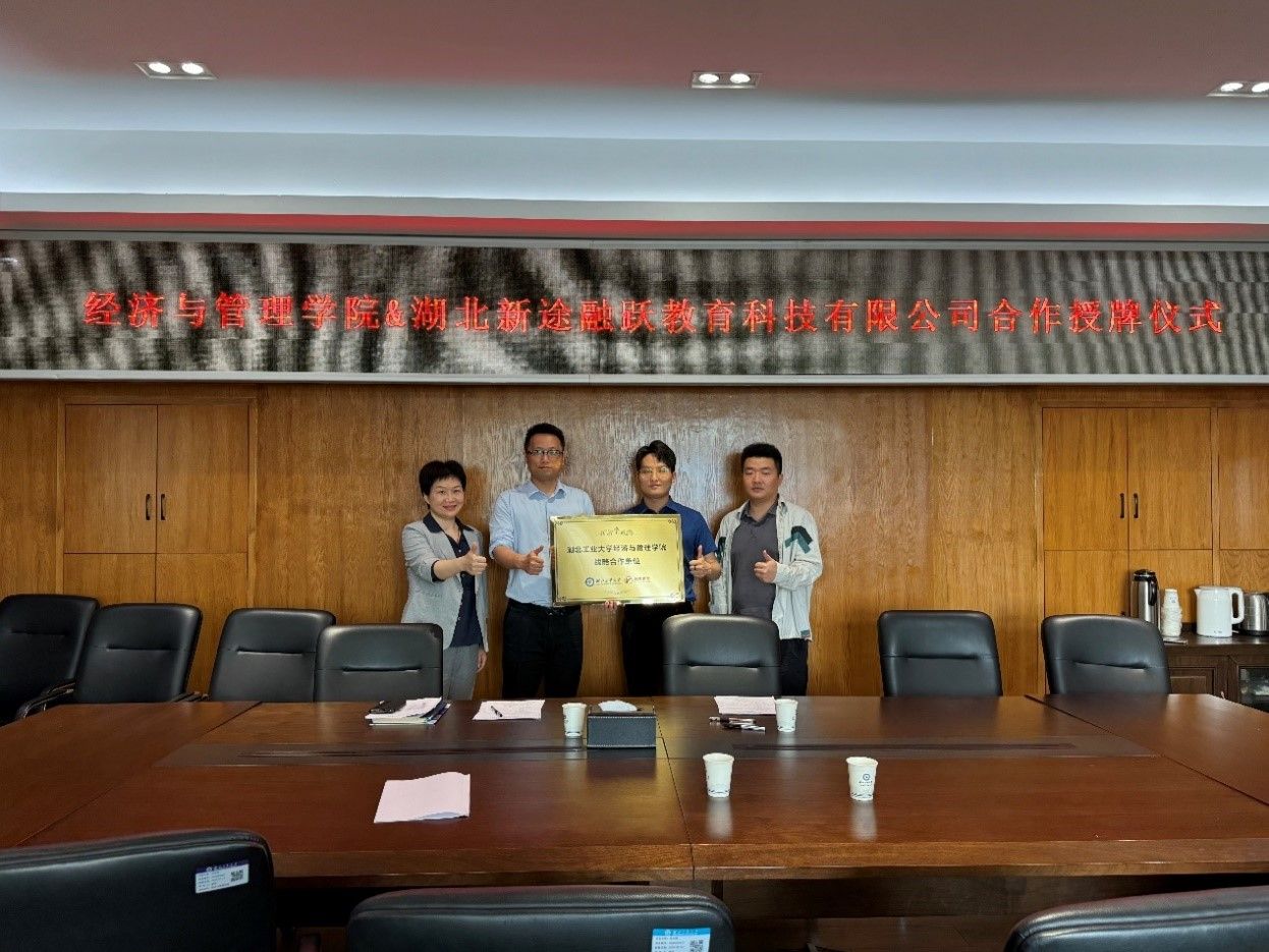2025年4月23日星期三,我校经济与管理学院与湖北新途融跃教育科技有限公司合作签约仪式在文科楼会议室举行。