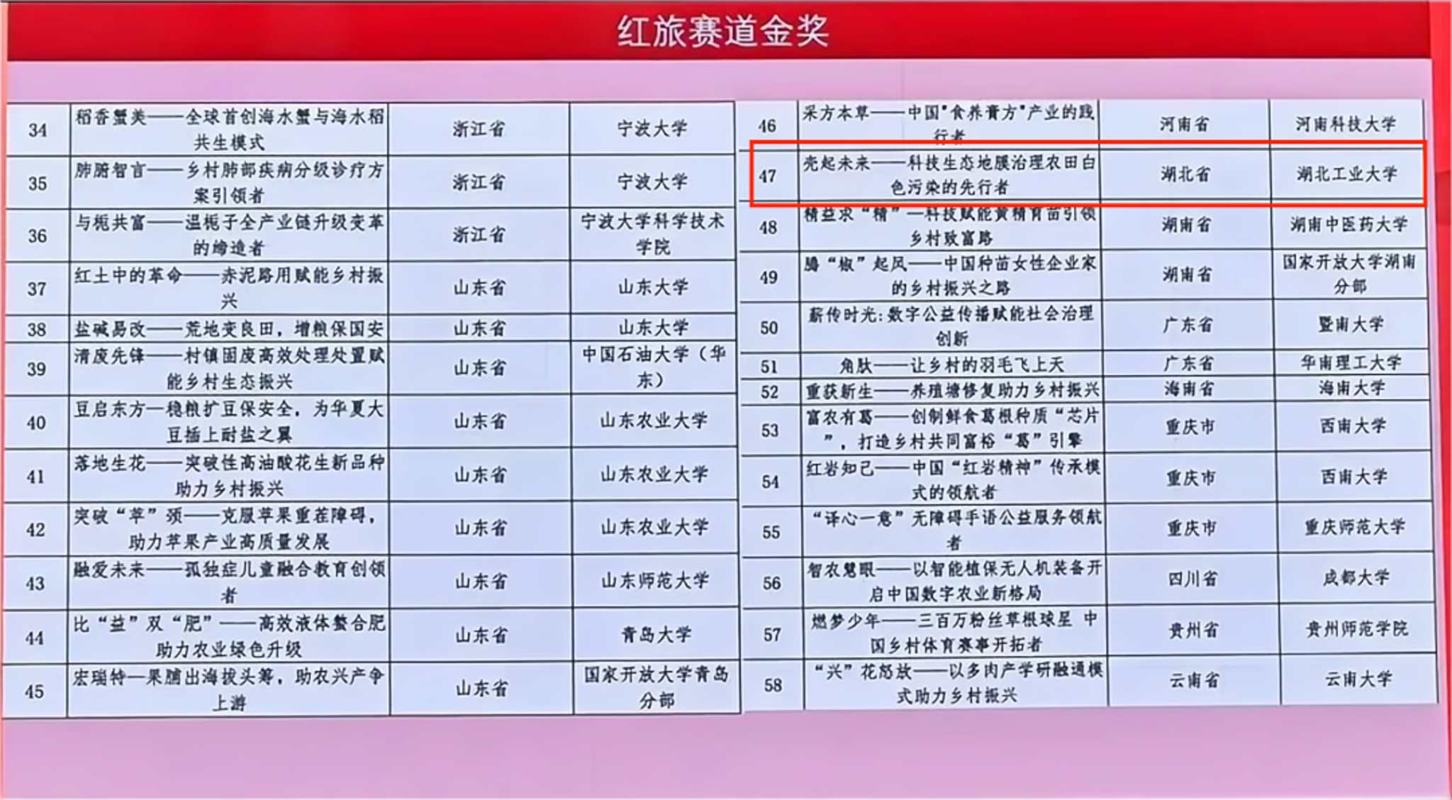 我院萧栋栋党支部书记胡常春老师指导的《壳起未来——科技生态地膜治理农田白色污染的先行者》项目斩获国赛金奖,为湖北省红旅赛道唯一金奖。该项目团队通过技术研发将虾壳固废资源循环再利用,解决了可降解地膜市场痛点问题,具有良好的经济和社会价值,赛事团队经过三年攻关,斩获学院在此类赛事中的首枚国家级金奖。