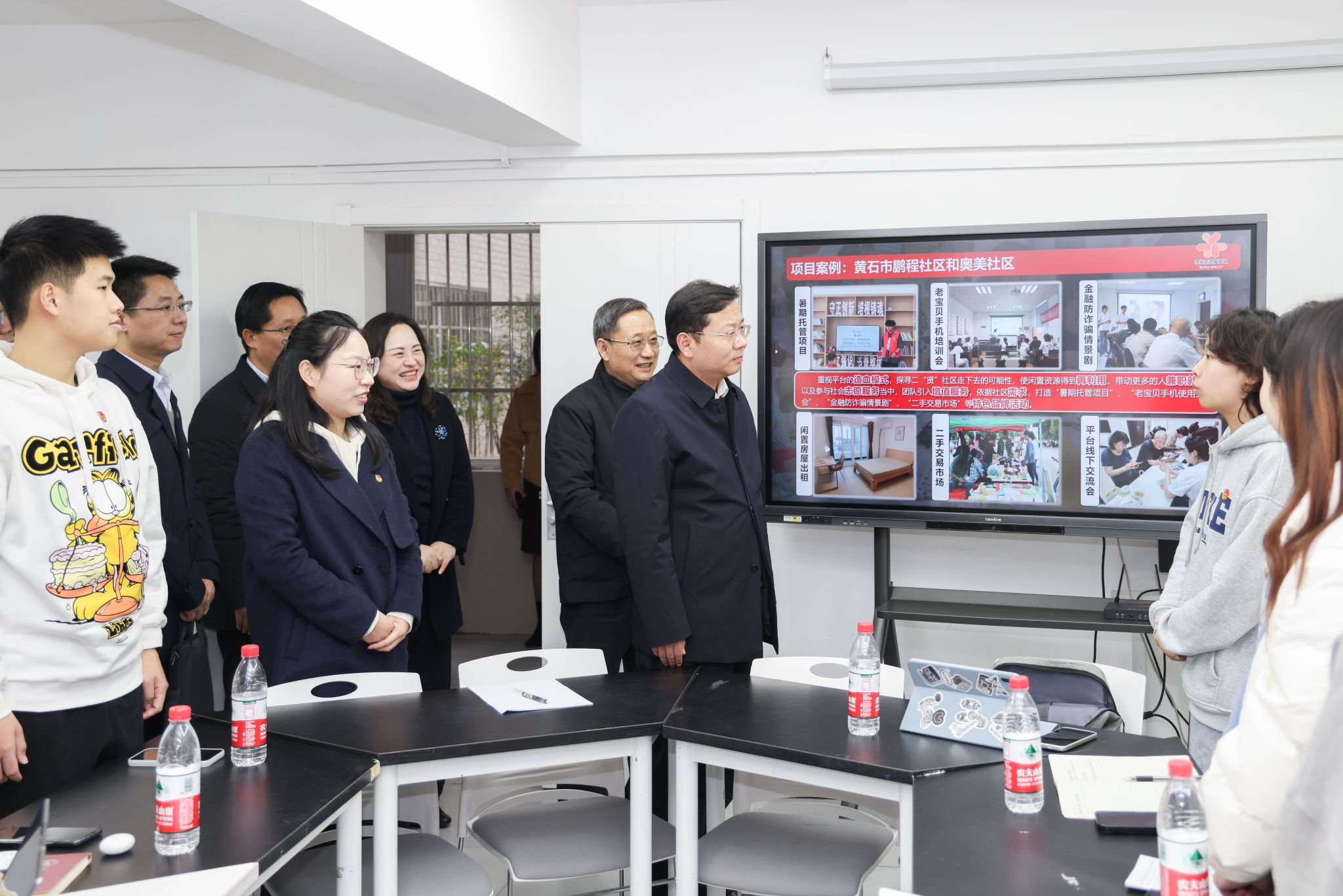 周森锋一行来到学院“一站式”学生社区团学服务站,详细了解基层团组织“青年之家”“团(学)代表联络站”“社区服务岗”等服务阵地建设和运行情况,关心“挑战杯”竞赛团队备赛进度,并与团学代表和退伍大学生亲切交流,对学院团建创新试点工作表示肯定。