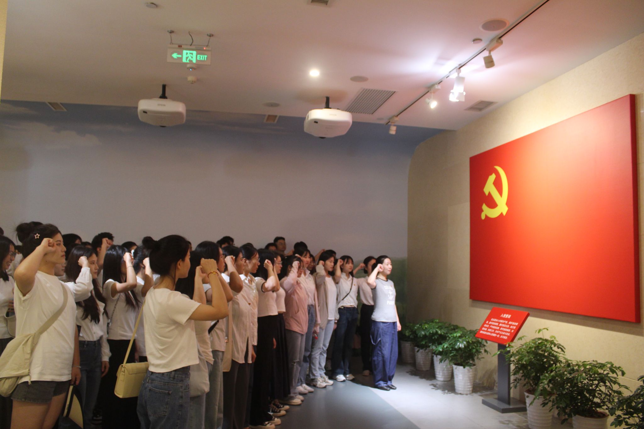 参观完,全体党员来到党旗下庄严宣誓。在张静怡老师的带领下,党员们高举右手,面向党旗,郑重宣誓:“我志愿加入中国共产党,拥护党的纲领,遵守党的章程,履行党员义务,执行党的决定,严守党的纪律,……,”铿锵有力的誓言回荡在陈列馆中。