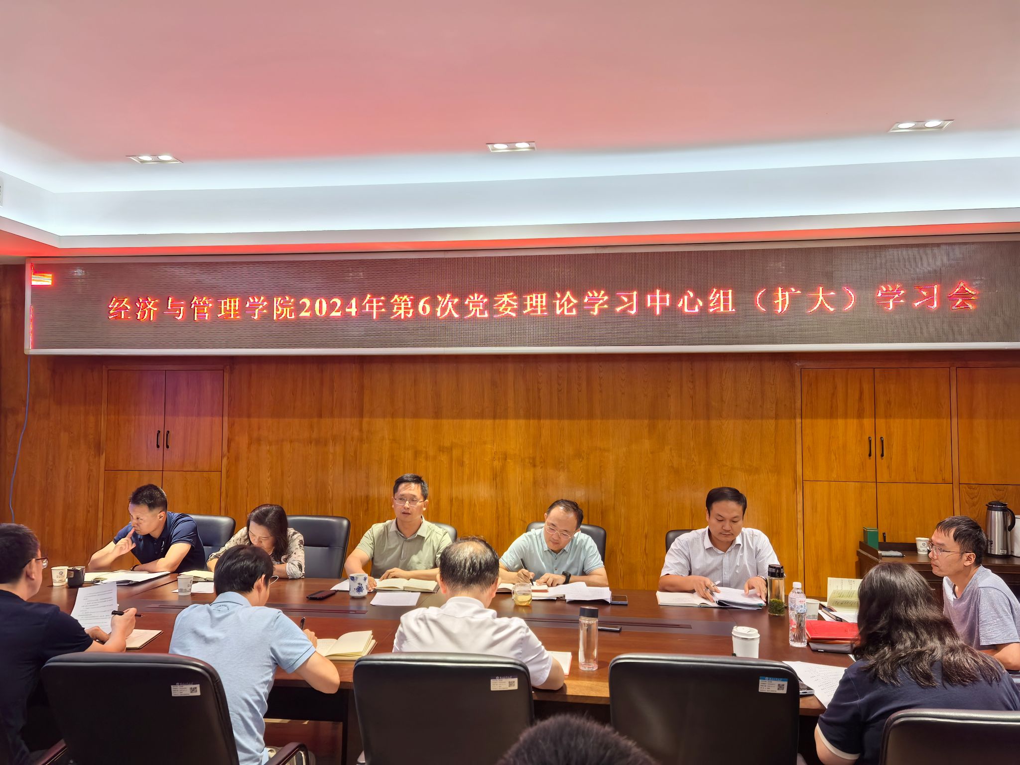9月19日,经济与管理学院举行2024年第6次党委理论学习中心组(扩大)学习。学院领导班子成员、党委委员和全院中层干部参加学习,学院党委书记彭卫主持会议。