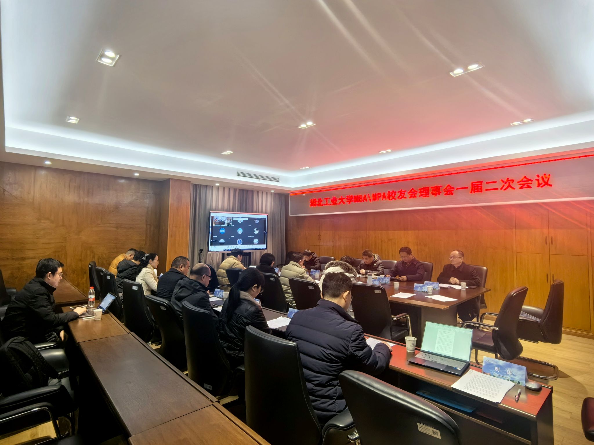 1月26日,湖北工业大学 MBA/MPA 校友会(以下简称校友会)第一届理事会第二次会议在文科楼810会议室举行。会议以线上线下结合的方式进行。学校社会资源处副处长石刚、经济与管理学院党委书记彭卫、院长孙浩、副院长王利军出席活动,经济与管理学院专硕教育中心主任陈志刚、MBA中心主任邵继红、MPA中心主任杨爱葵以及校友会第一届理事成员70余人参加了会议,共同谋划校友会发展,献计献策。会议由校友会副会长吴江主持。