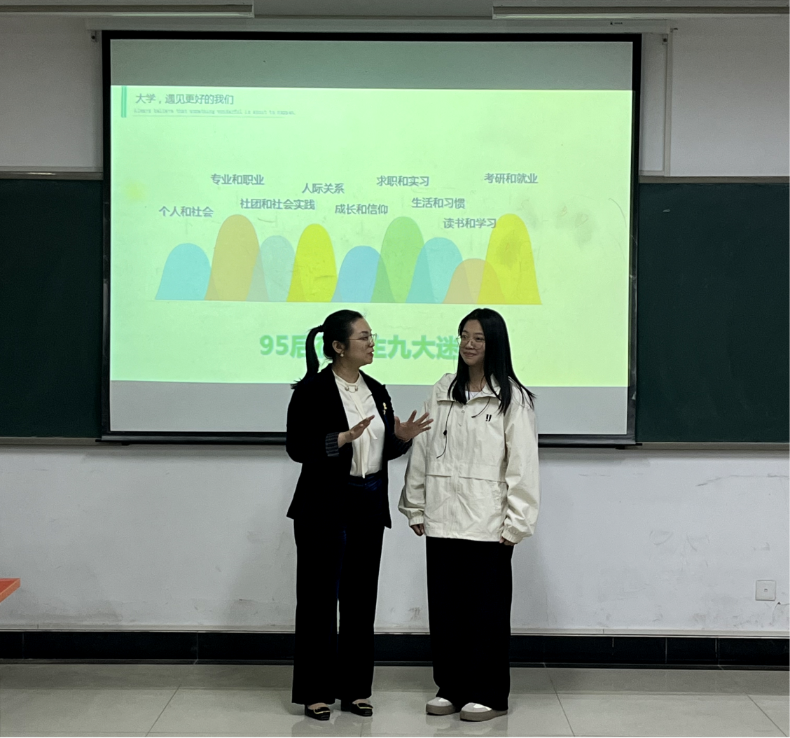 11月7日,在五教B307教室,学院特邀MeetHRGroup企业的吴雪老师为学生带来了一场主题为“扬帆起航 生涯起航”的公益讲座。作为一名国家认证生涯规划师和国家一级职业规划指导师,吴雪老师凭借自身丰富的行业经验和深厚的专业知识,通过趣味横生的互动小游戏,向学生强调了兴趣的契合度、价值观的认同度和技能优势的匹配度对职业定位的重要性,为在场的学生们点亮了未来职业发展之路。