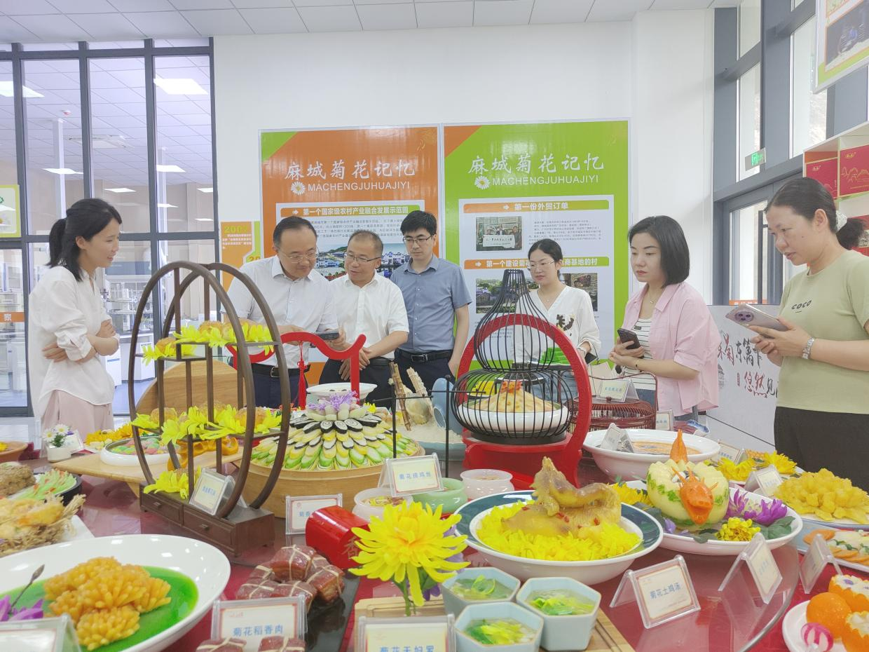 随后代表团到菊花创新中心进行实地调研。老师们参观了菊花种植基地、加工车间及研发中心,对菊花产品的开发、生产及销售等环节有了更加深入的了解。代表团老师围绕大健康产业的创新发展、品牌建设及市场拓展等问题展开了热烈讨论,并提出了建设性的意见和建议。