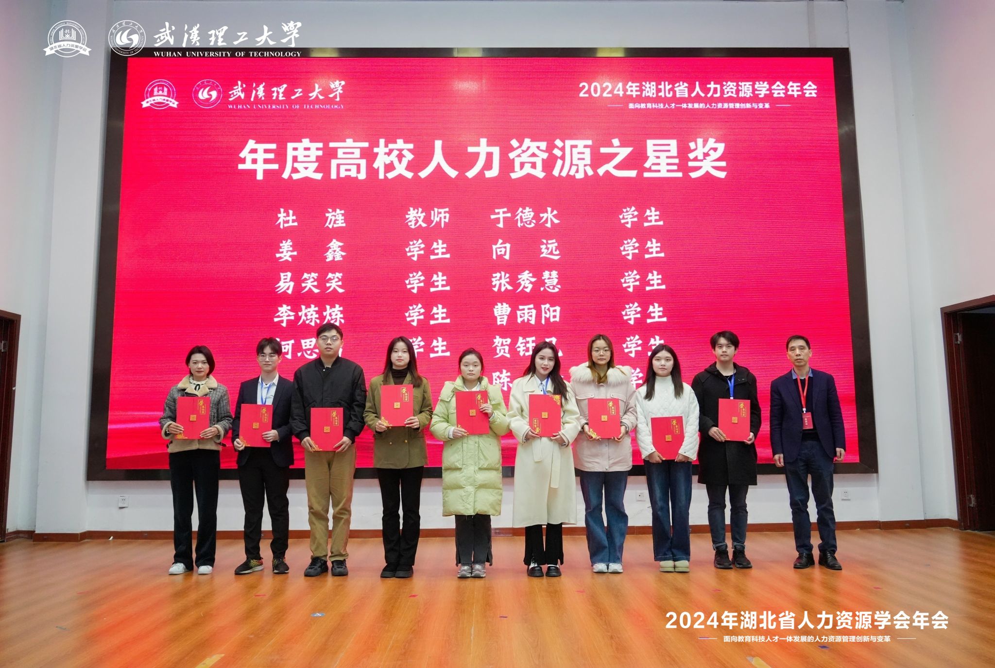 2024年12月14日,湖北省人力资源学会2024年年会在武汉理工大学顺利召开,吸引了国内外40余所高校和30余家企业的近400名专家学者和企业界实务工作者。我院人资系青年教师,硕士研究生和本科生代表参加了此次会议。