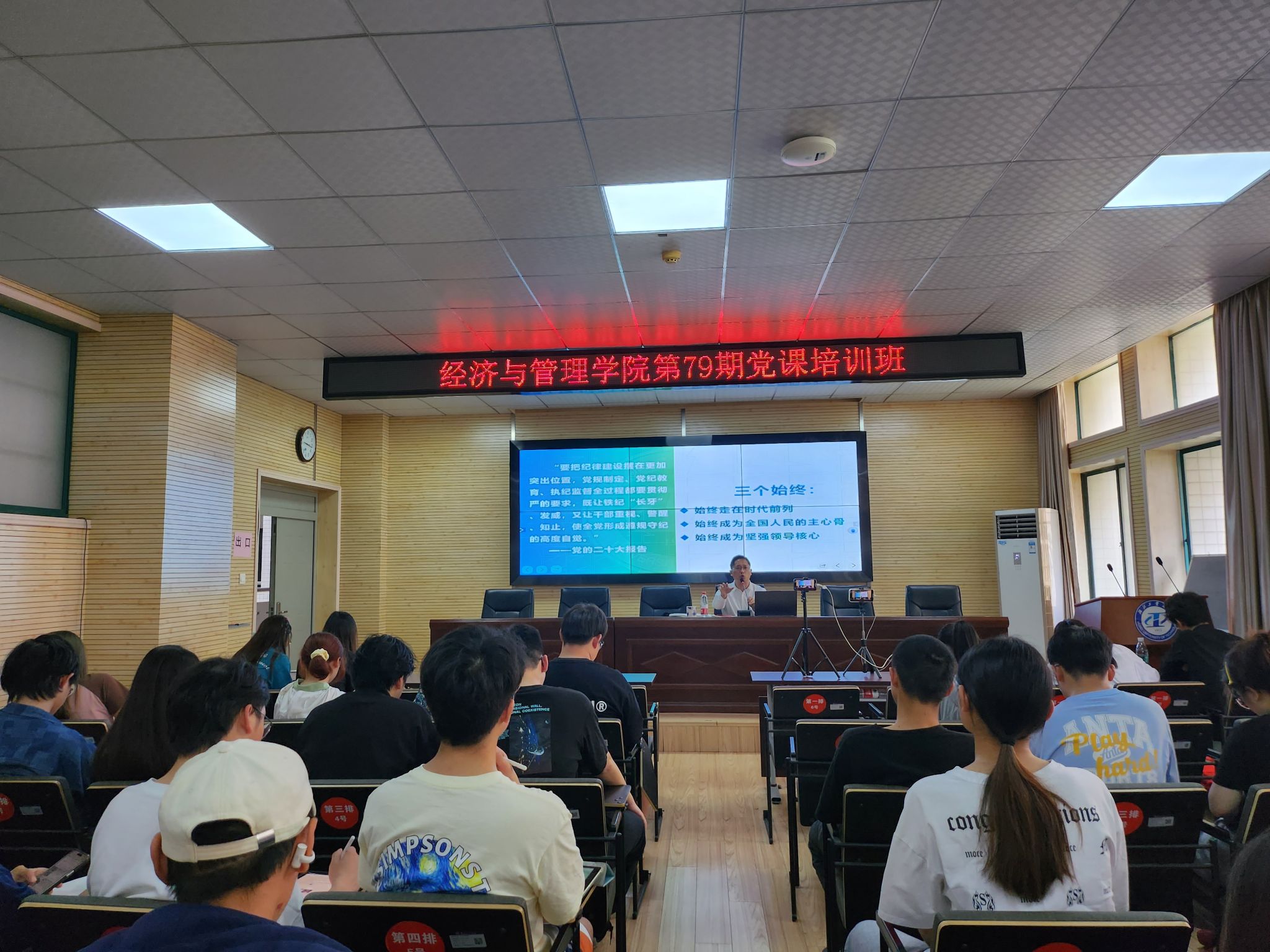 4月27日,经济与管理学院第79期党课培训班在文科楼顺利开班。本次党课采取“线上+线下”的模式,由学院领导班子成员授课。学院本科生、研究生共计600余名同学参加了党课培训。