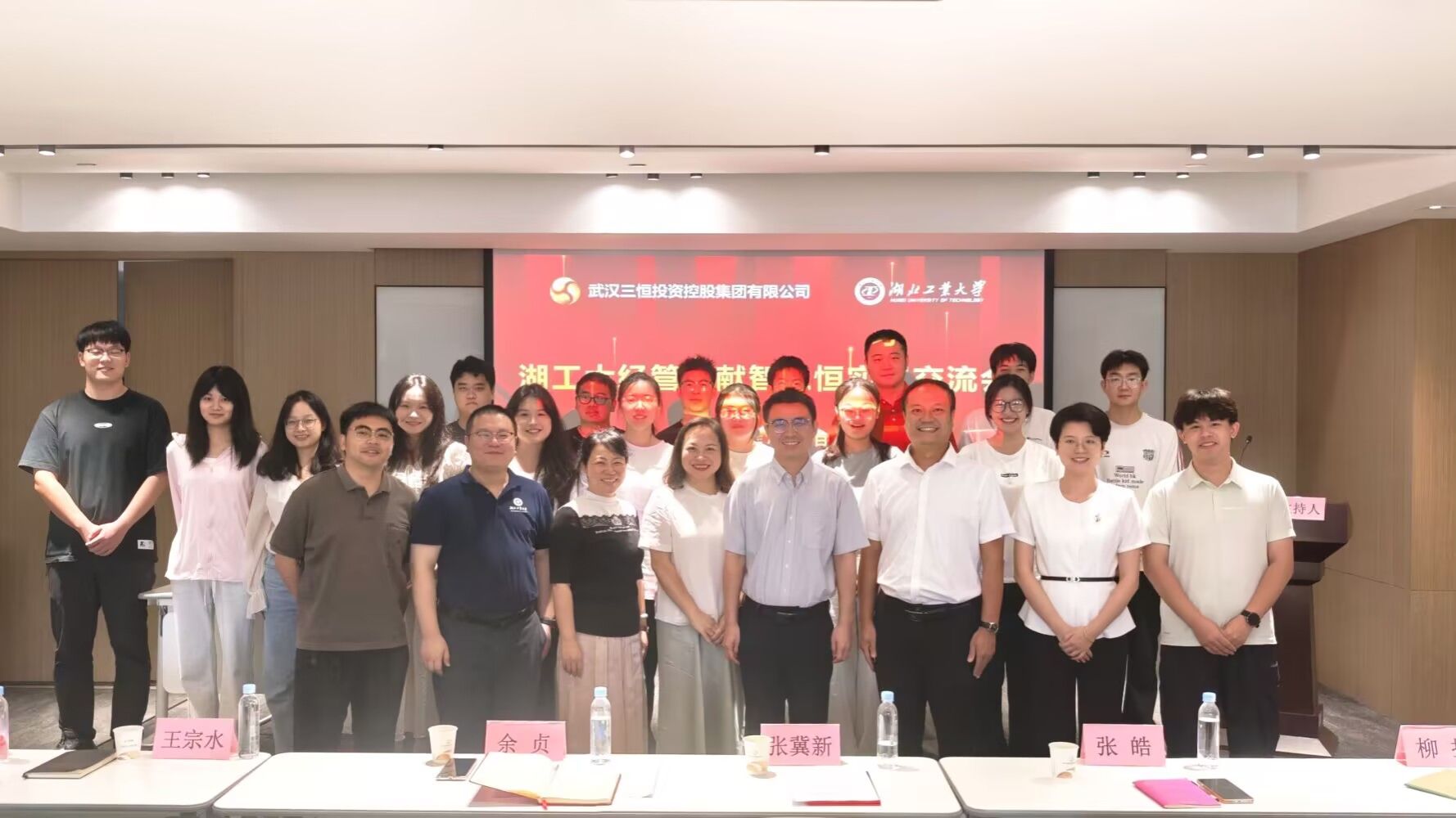 7月25日上午,湖北工业大学经济与管理学院在武汉三恒投资控股集团有限公司举行短学期实践总结汇报会,来自学院的13名本科生和3名研究生逐一汇报短学期实践成果。三恒集团子公司武汉创新人才发展有限公司常务副总经理王宗水、湖北恒选企业服务有限公司执行董事艾丹、经济与管理学院党委副书记余贞、副院长张冀新,部分专业教师代表和辅导员代表参会,总结会由副院长张冀新主持。