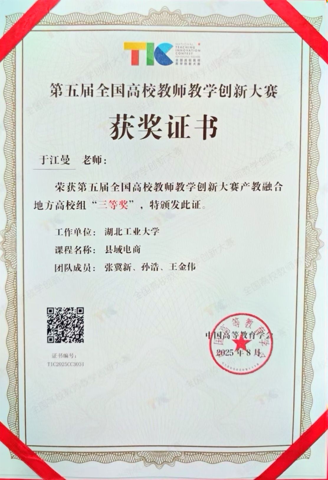 此次优异成绩不仅是教师团队的全力付出,更彰显了学院在教学创新与产教融合取得的育人成效。此前,在第五届湖北省高校教师教学创新大赛中,于江曼团队获产教融合赛道特等奖,彭梓倩团队获“四新”赛道中级组二等奖。未来,我院将以此为契机,坚持践行“以赛促教、以赛促改、以赛促创”理念,搭建教学创新交流平台,助推教师队伍建设,引领教学创新课堂变革,切实提升课程教学质量与教师育人能力。