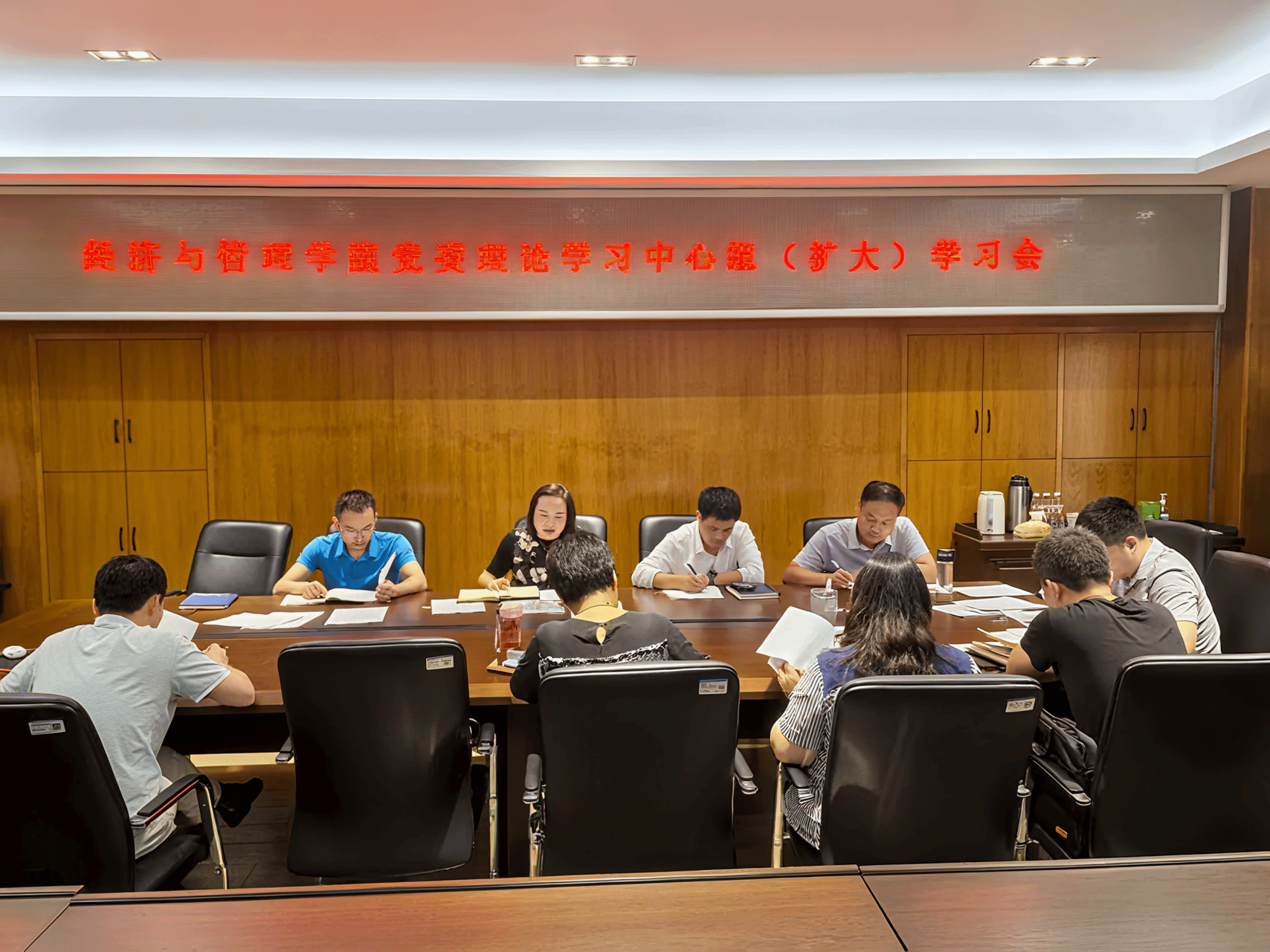 9月11日下午,经济与管理学院党委在文科楼810会议室举办2025年第9次党委理论学习中心组(扩大)学习会。学院领导班子成员、党委委员、院长助理参加了本次学习会,学院党委副书记余贞主持会议。
