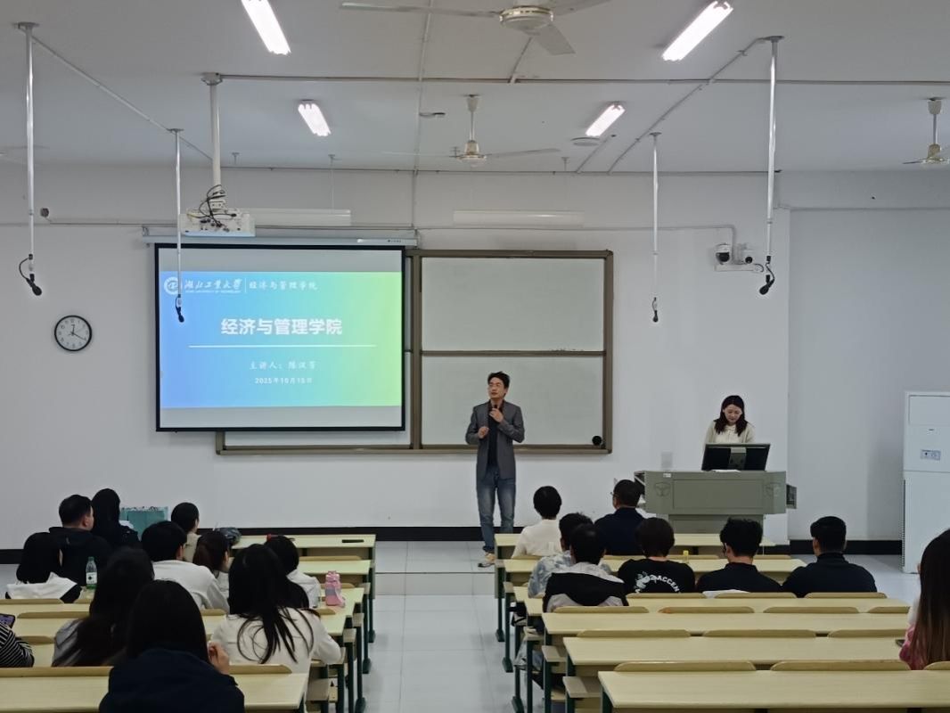 10月15日,湖北工业大学经济与管理学院会计系主任代文、会计系支部书记陈汉芳一行2人赴武汉学院会计学院开展2026年研究生招生宣传。宣讲活动由武汉学院会计学院国际会计教育中心主任赵杰主持,我院会计系陈汉芳老师介绍了湖北工业大学经济与管理学院的研究生招生情况、学科建设、师资队伍、研究平台和科研成果,并针对武汉学院学生的考研院校及专业方向的选择进行了全面的分析,希望同学们能够结合自身实际,选择合适的院校专业。
