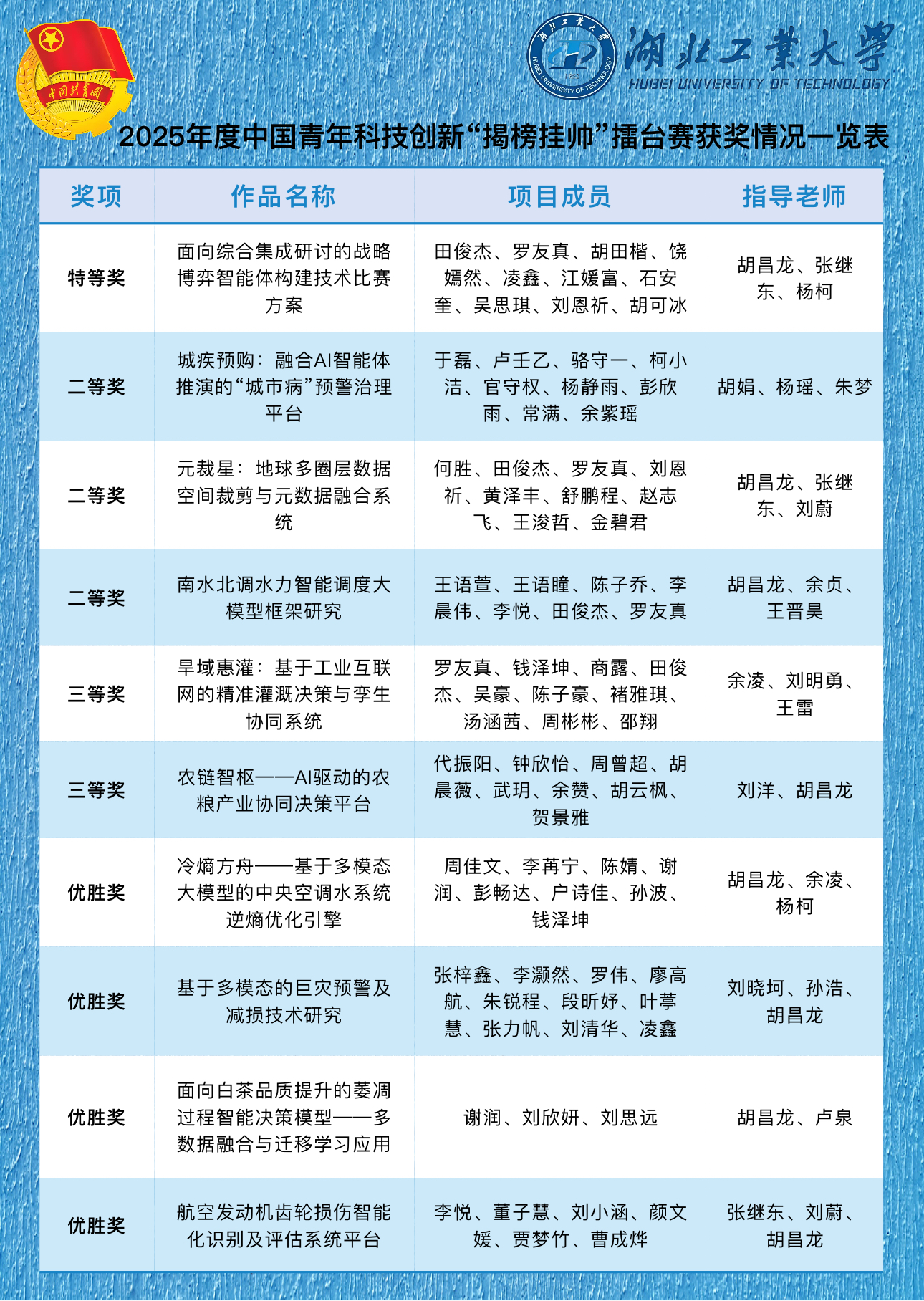 在本年度中国青年科技创新“揭榜挂帅”擂台赛备赛与角逐中,我院在学校及相关职能部门的悉心指导与全力支持下,凝聚师生合力、深耕备赛全流程,学院党委高度重视,邀请校内外专家线上线下多轮指导,专业教师与学工团队紧密协作,构建“协同育人”备赛体系,围绕项目创新点、技术难点开展多轮研讨;参赛学子以高度热情全心投入,反复优化方案、攻克技术难关。