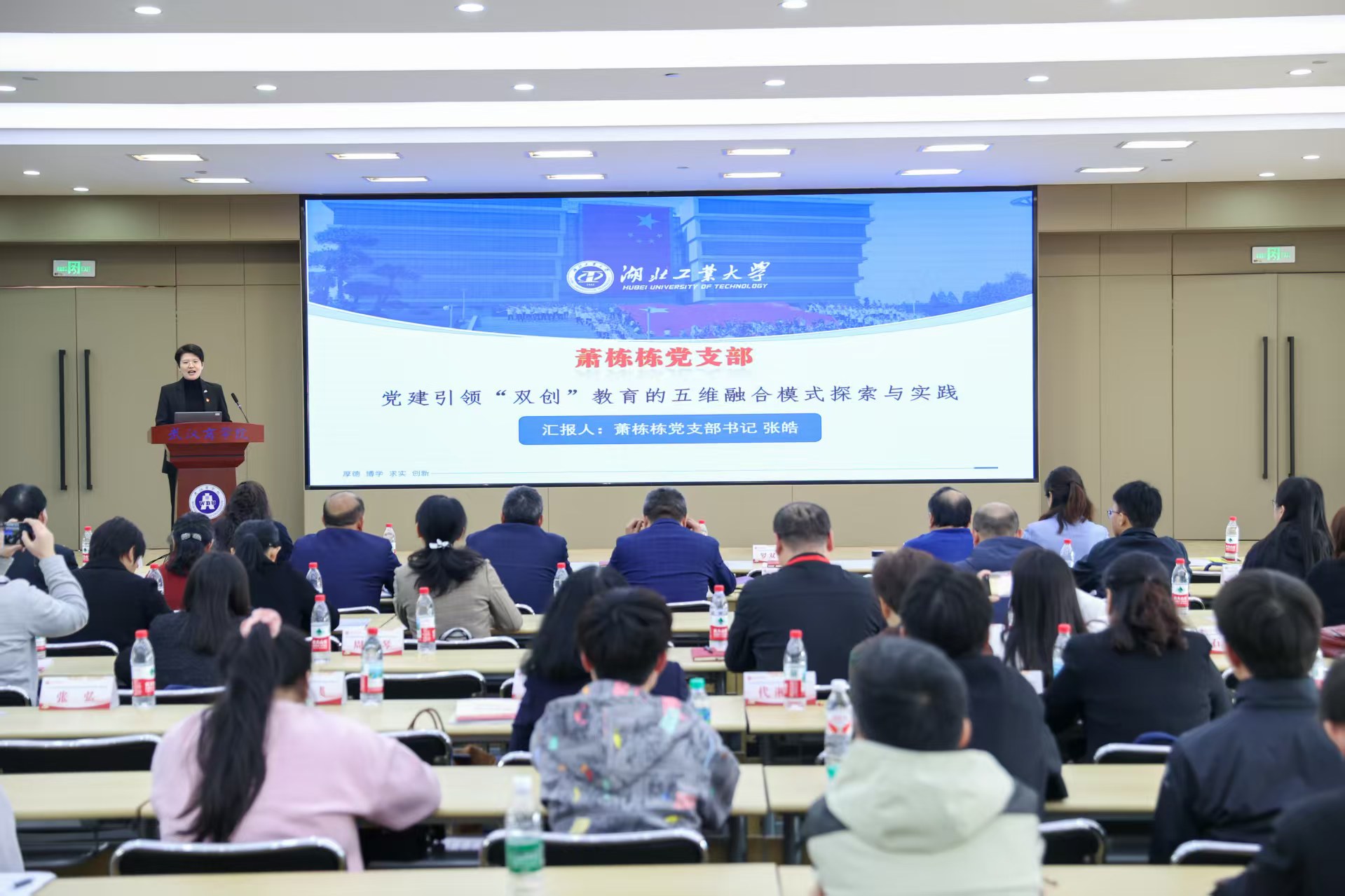 11月14日,由武汉商学院主办的“2025年湖北省新时代深化高校党建示范创建和质量创优学术专题研讨会”在武汉商学院致远楼三楼多功能厅举行。来自全省50所高校的二级学院党委书记、党支部书记及相关单位负责人齐聚一堂,共商新时代高校党建高质量发展大计。经济与管理学院萧栋栋党支部书记张皓应邀参会,并在兄弟高校典型经验分享环节作题为《党建引领“双创”教育的五维融合模式探索与实践》的大会汇报。