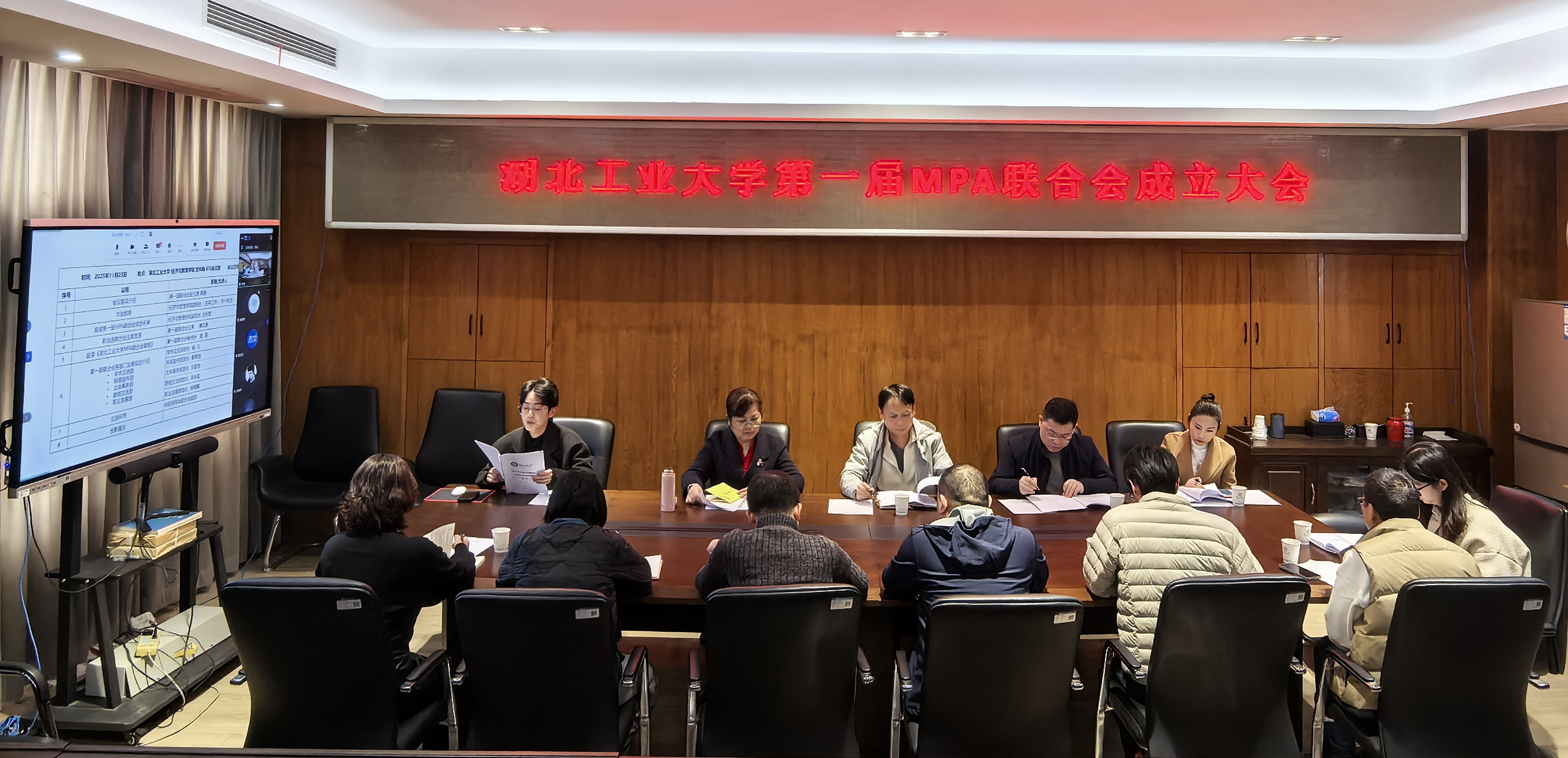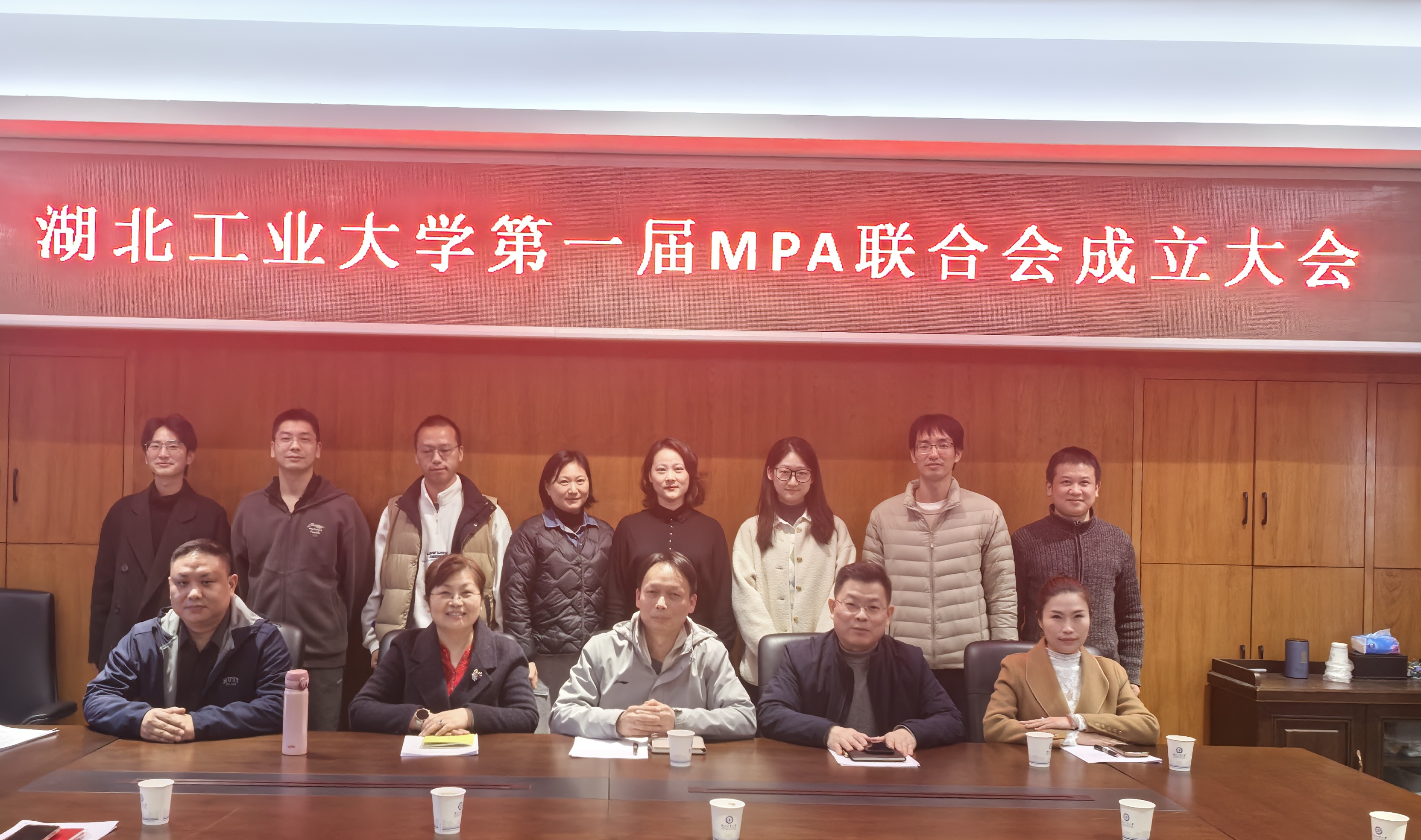 2025年11月23日下午,湖北工业大学第一届MPA联合会成立大会在文科楼810会议室隆重举行。经济与管理学院副院长(主持工作)李平、副院长王利军、专硕中心执行主任朱平利,以及邵继红、陈志刚老师共同出席,与第一届联合会成员代表一同见证了这一重要时刻。
