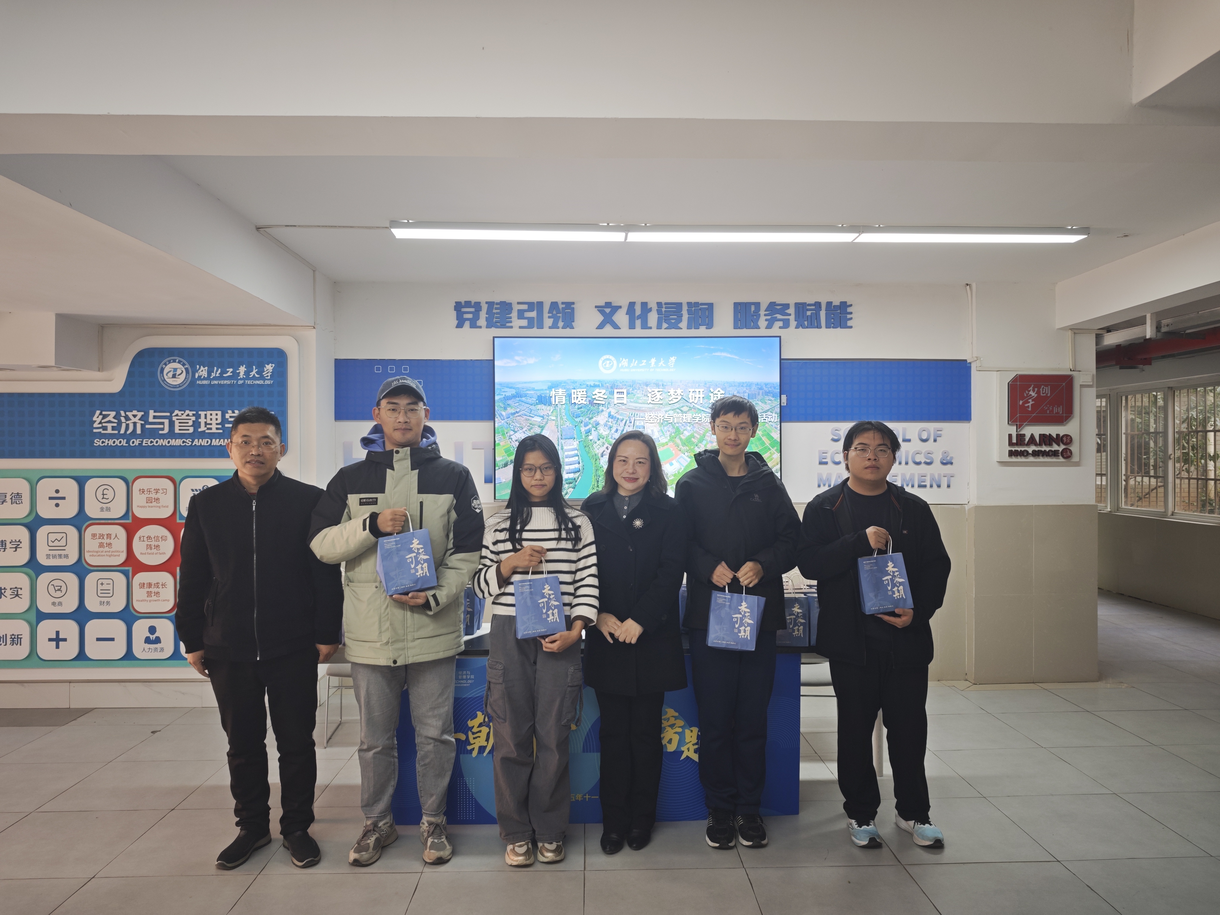 2026年全国硕士研究生招生考试即将到来,为帮助考研学子缓解备考压力,坚定必胜信心,11月27日,经济与管理学院在“一站式”学生社区为考研学子准备了“考研暖心福袋”。学院副院长(主持工作)李平、党委副书记余贞、院长助理孙雨生,以及学工办全体辅导员参加了本次活动。