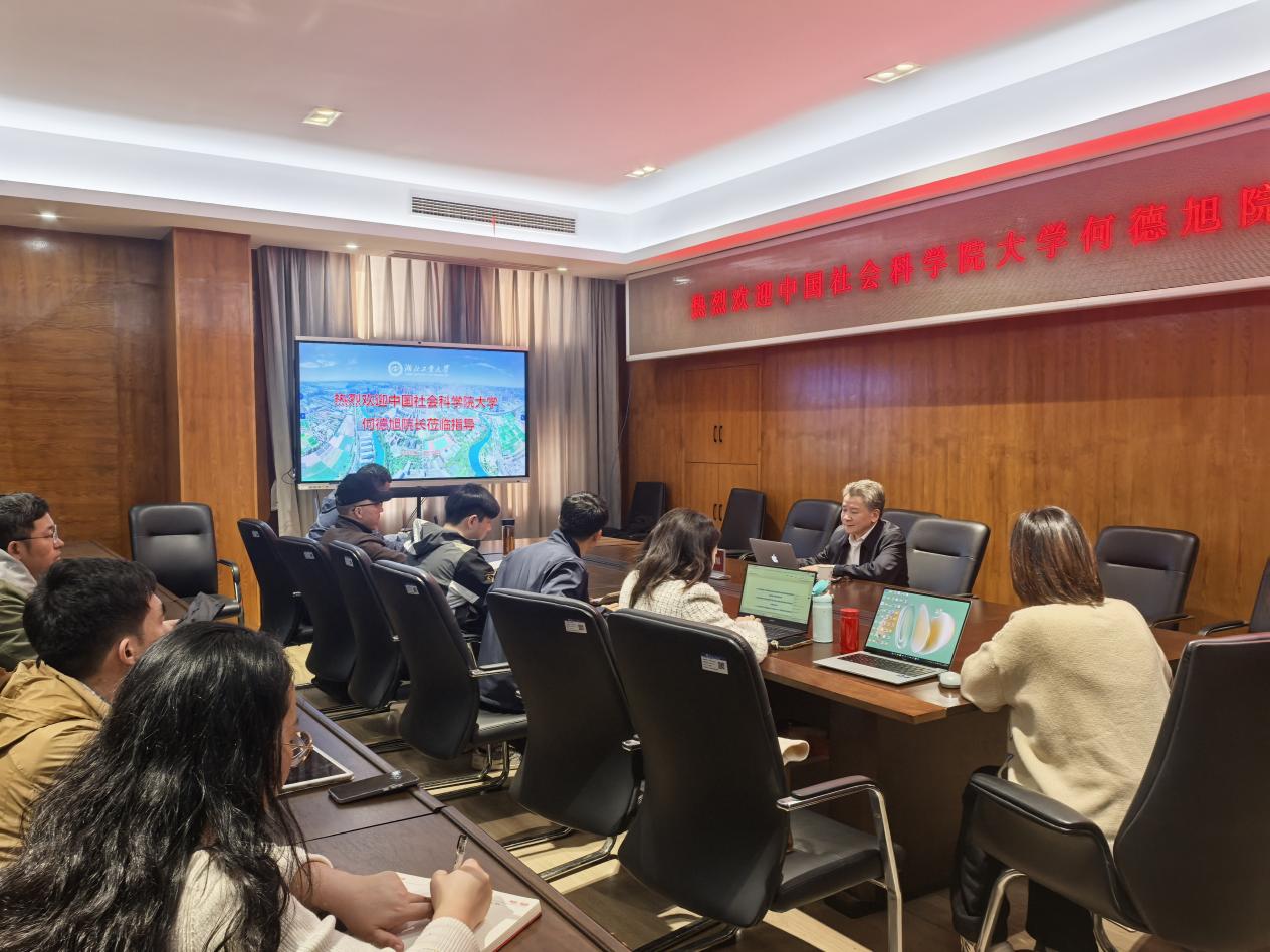 2025年11月30日下午,中国社会科学院大学商学院院长、博士生导师何德旭教授应邀莅临经济与管理学院“经诚大讲堂”,在文科楼810会议室开展“当前金融值得关注的若干重大问题”学术讲座。本次讲座系学院40周年学术院庆系列活动之一,由李平副院长(主持工作)主持,金融系、会计系多名教师参与交流。
