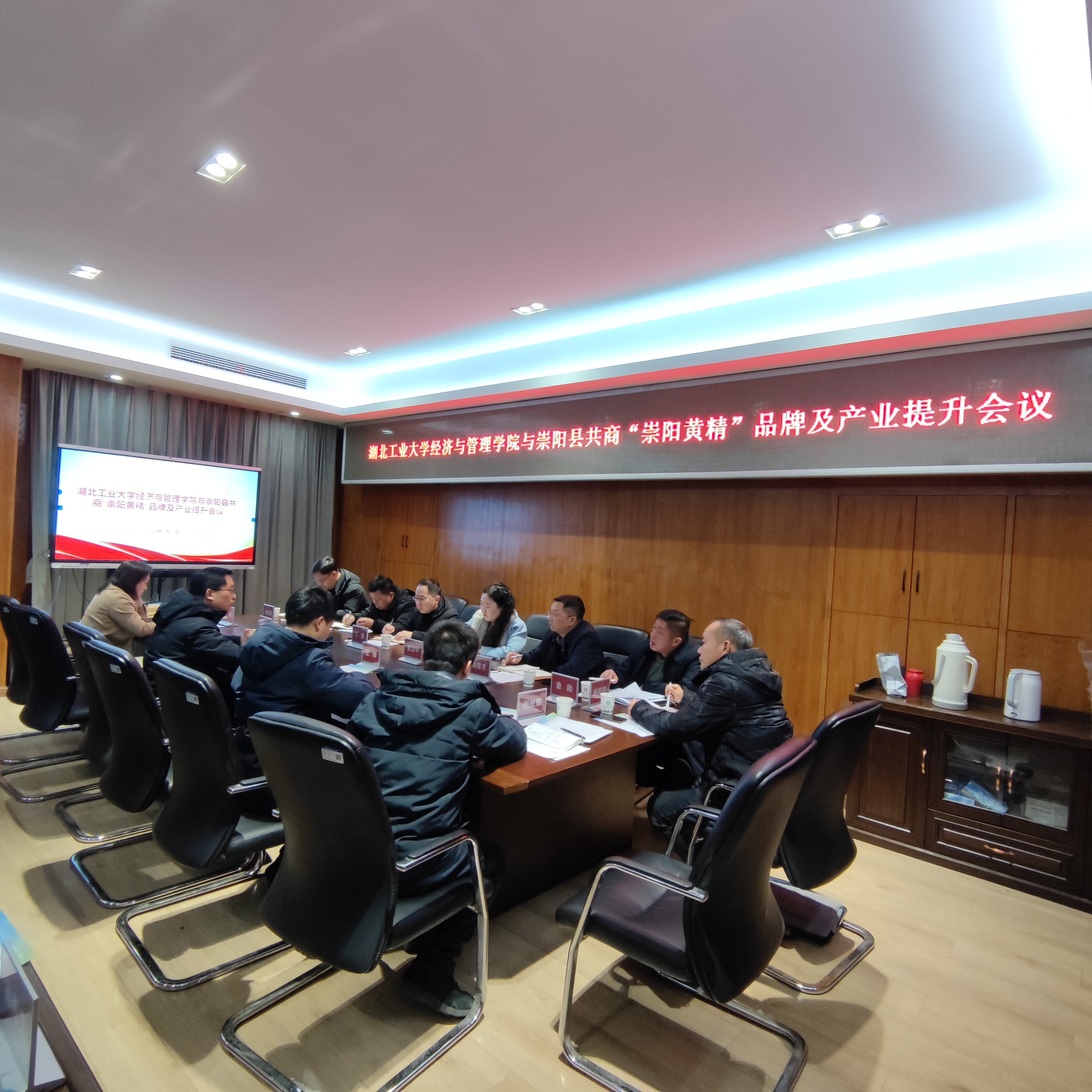 为深化校地合作,以有组织科研助力一县一品建设,2026年1月21日,湖北工业大学经济与管理学院与崇阳县开展“崇阳黄精”品牌及产业提升合作交流活动。崇阳县人大副主任曾卫平带队,县政府办、县财政局、县现代农业发展中心及中药材协会相关负责人一行到访,校科技成果转化中心主任徐志刚,经管学院党委书记彭卫、副院长(主持工作)李平等学院全体领导班子成员,院助,各科室负责人员参与会议。