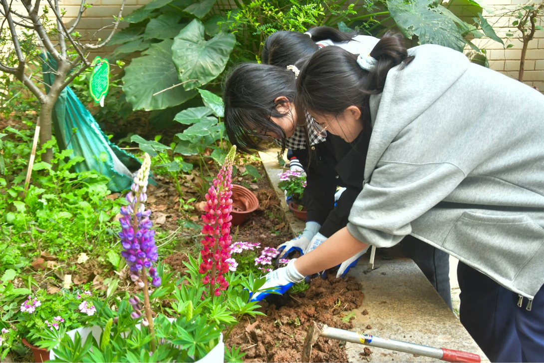 活动伊始,在辅导员带领下,学生们系统学习了草坪铺设与绿植移栽的基本要领。在实践环节中,不同专业的“责任田”里,学生分工协作,清理枯枝杂草、松土平地、拆解盆栽、移栽新苗、挥锹挖坑、提桶浇水,在师生默契配合下,一株株花卉在春风中昂然挺立,为社区增添了盎然生机。